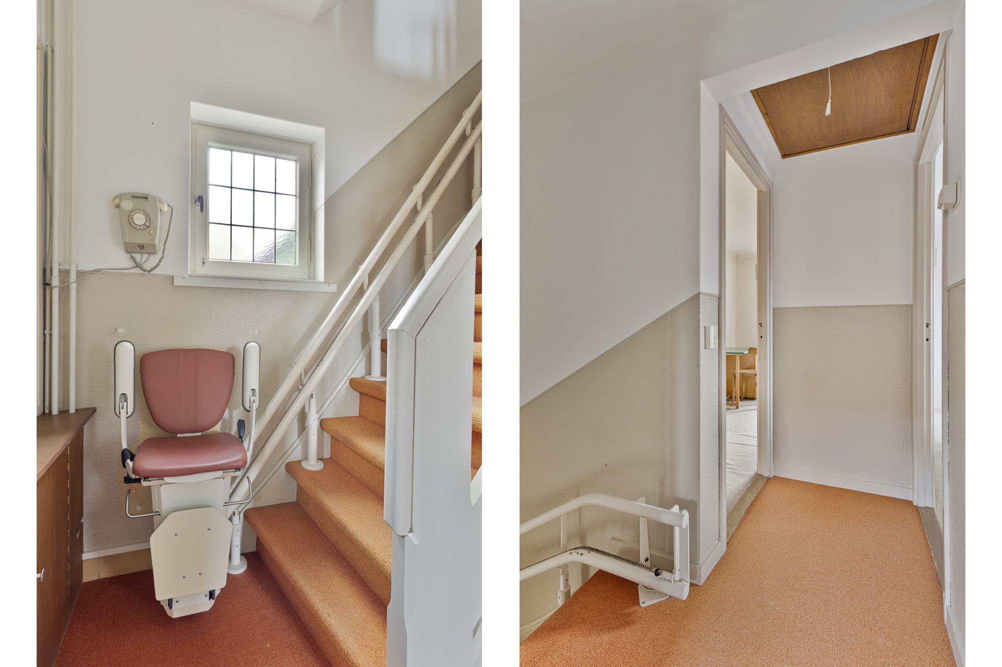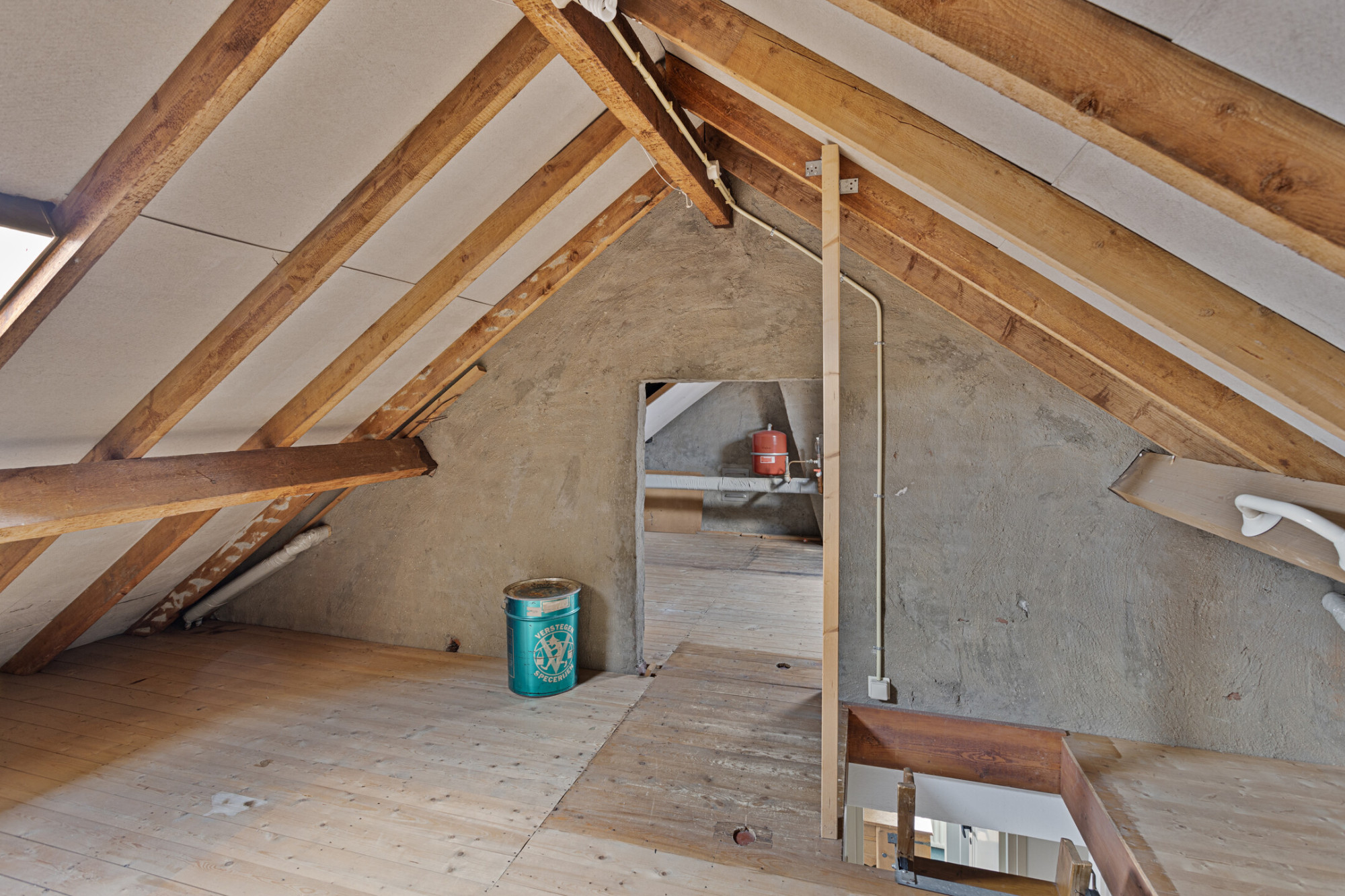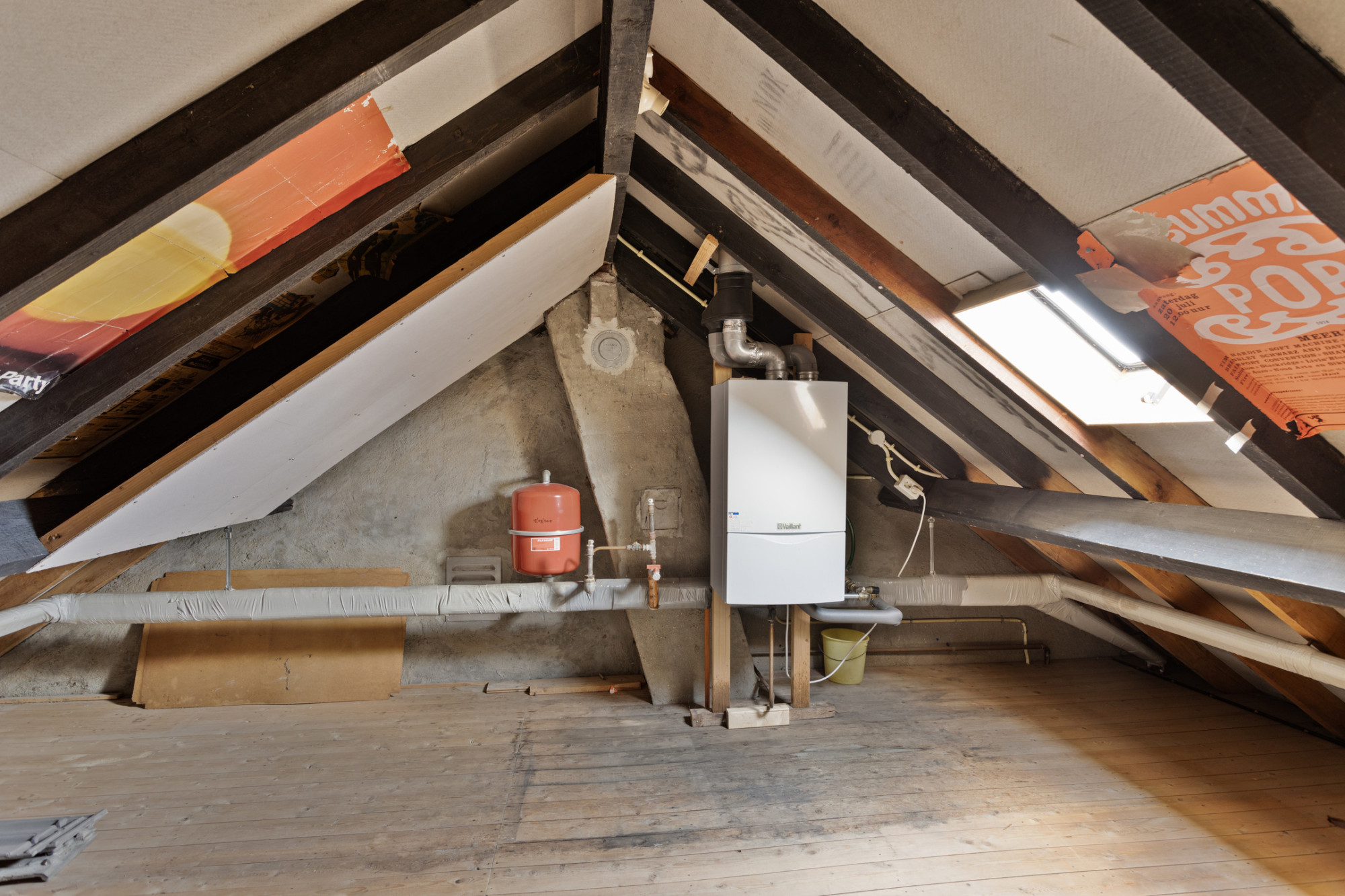 Via een vlizotrap bereikt u de ruime, beloopbare bergzolder waar de CV-combiketel zich bevindt.