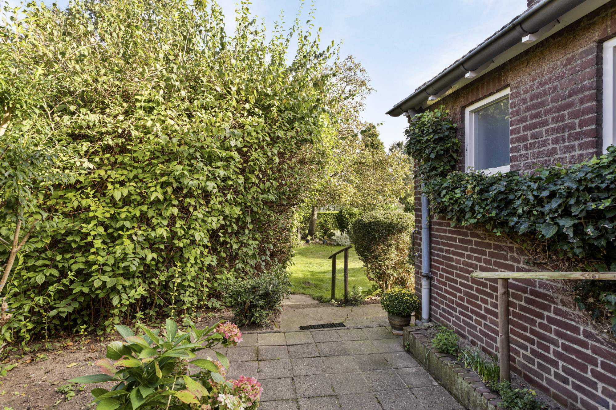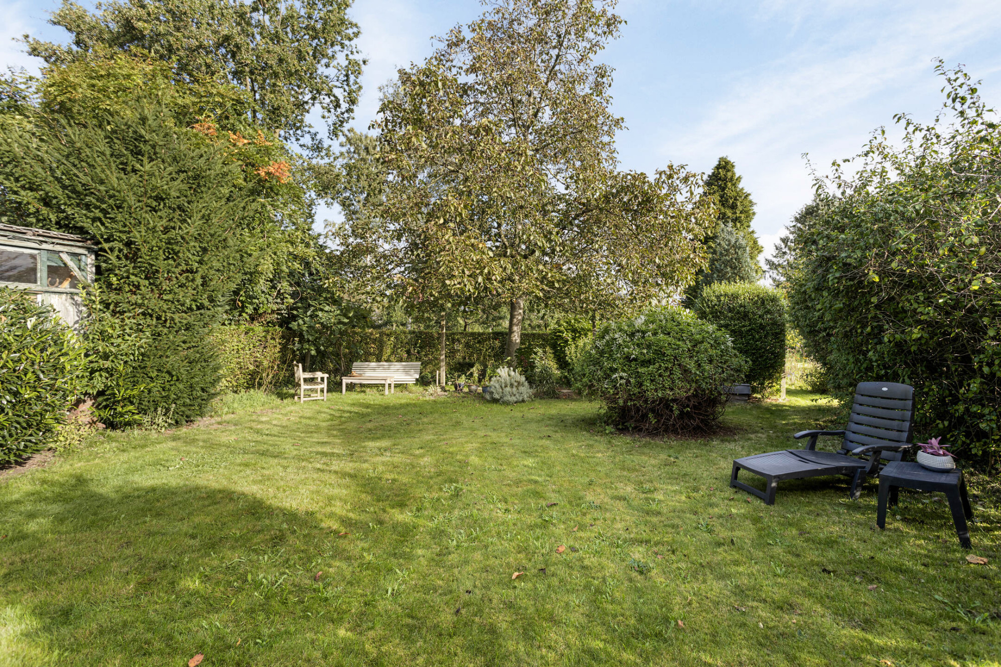 De tuin is werkelijk een oase van rust. Met een lengte van maar liefst 68 meter biedt de diepe achtertuin volop privacy en een weids uitzicht op het omliggende groen. Hier kunt u genieten van zonnige dagen onder de karakteristieke notenboom, en de tuin biedt meer dan genoeg ruimte voor bijvoorbeeld een moestuin of speelplek voor kinderen. Verder vindt u hier een houten berging en een grondwaterpomp, ideaal voor tuinonderhoud.