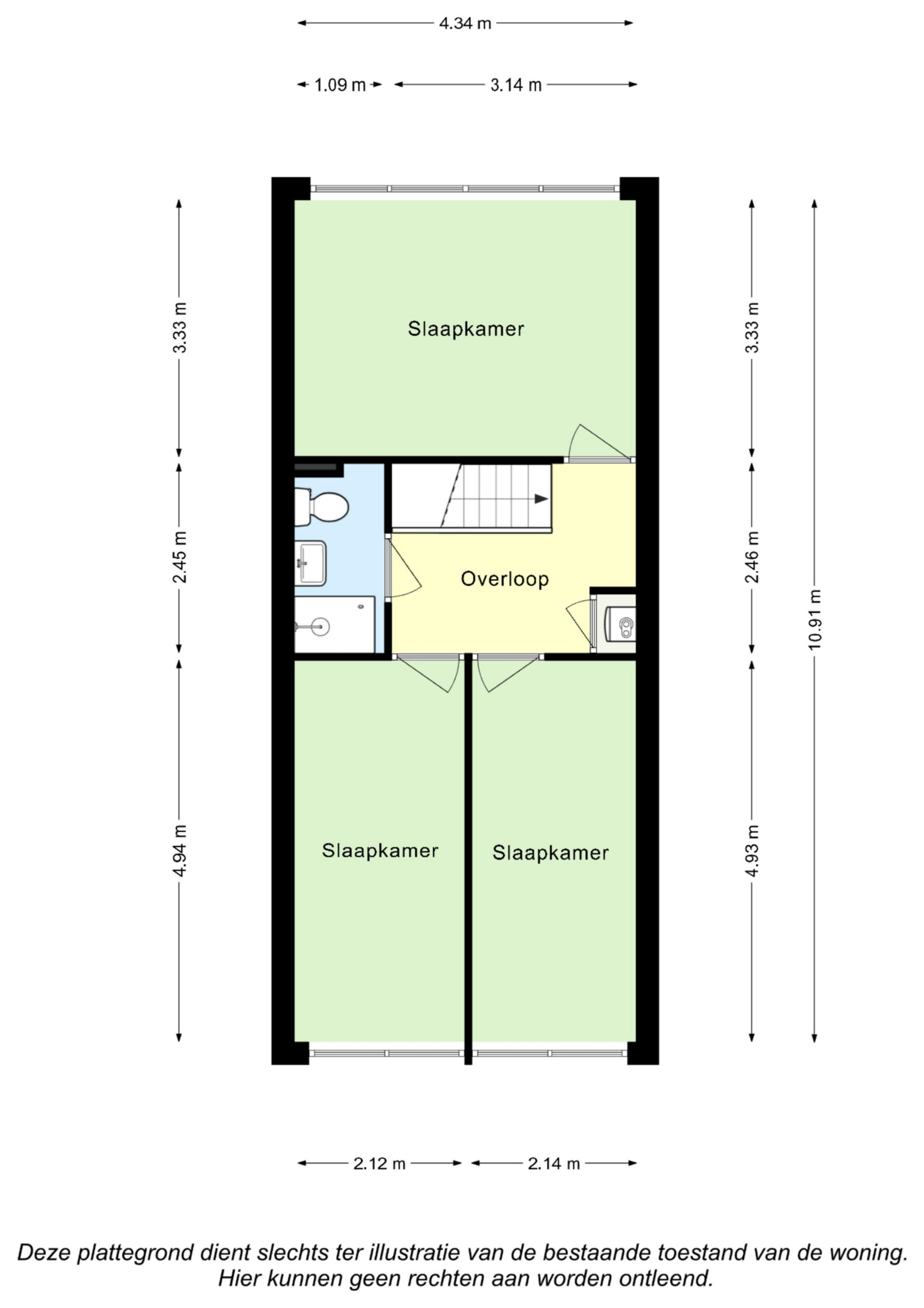 Slaapkamer III (4,93 m x 2,14m) aan de voorzijde gelegen