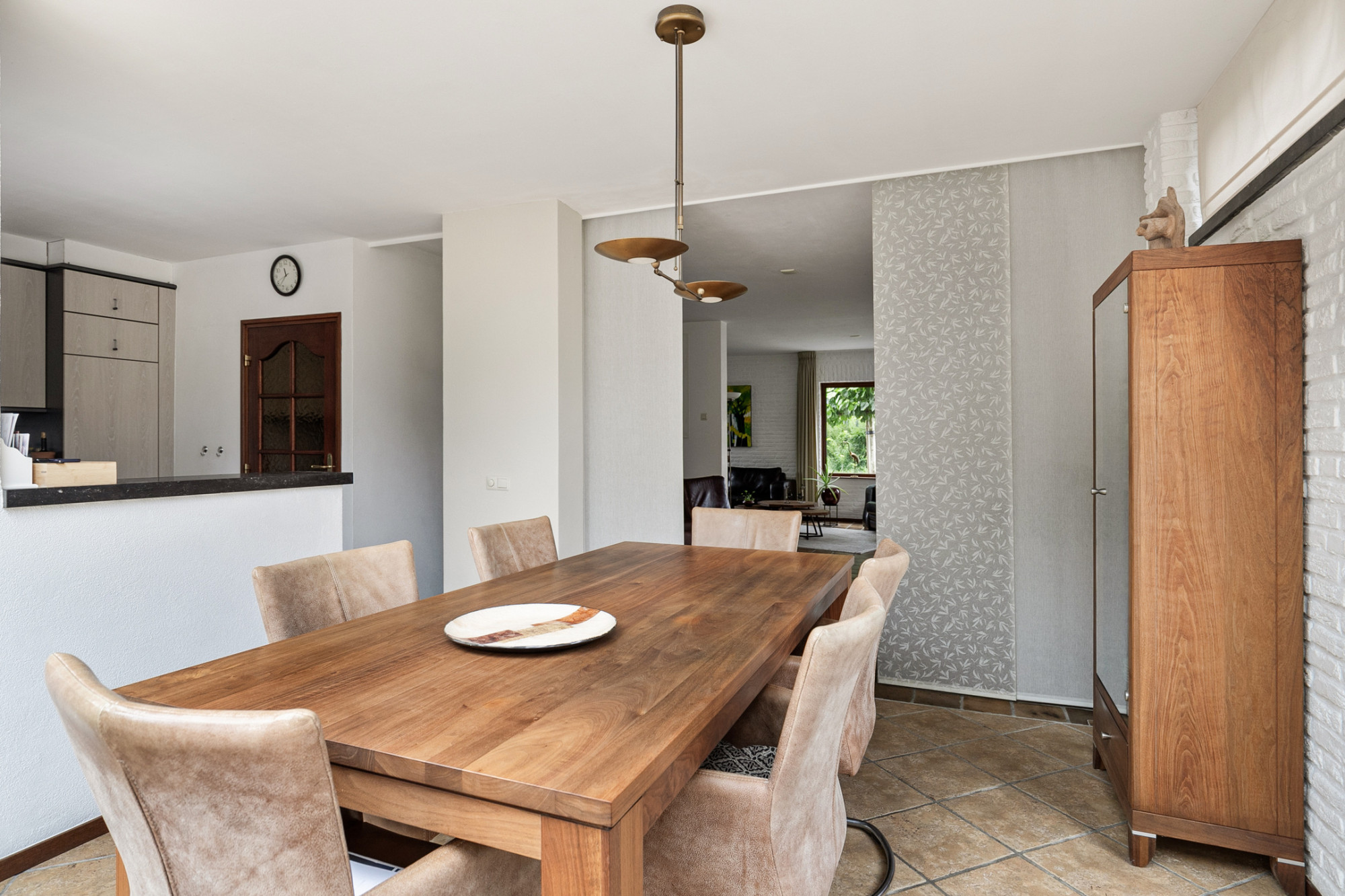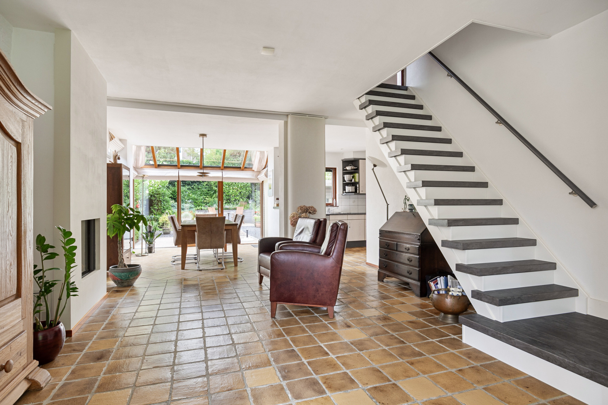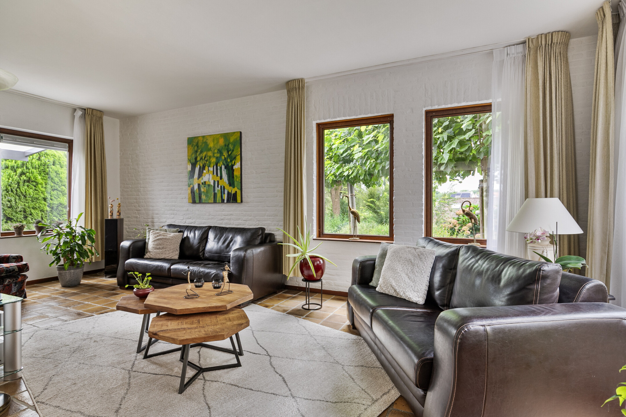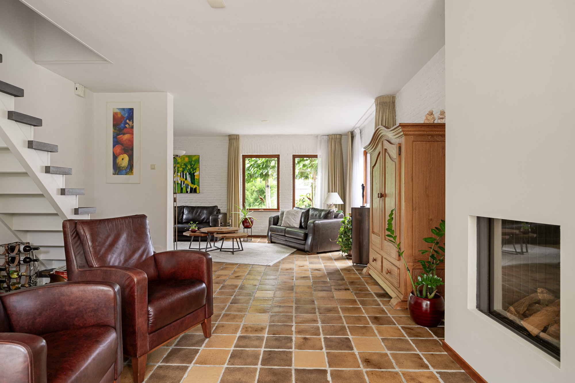 De ruime L- vormige woonkamer met gashaard en open verbinding met de tuinkamer biedt optimaal woongenot.