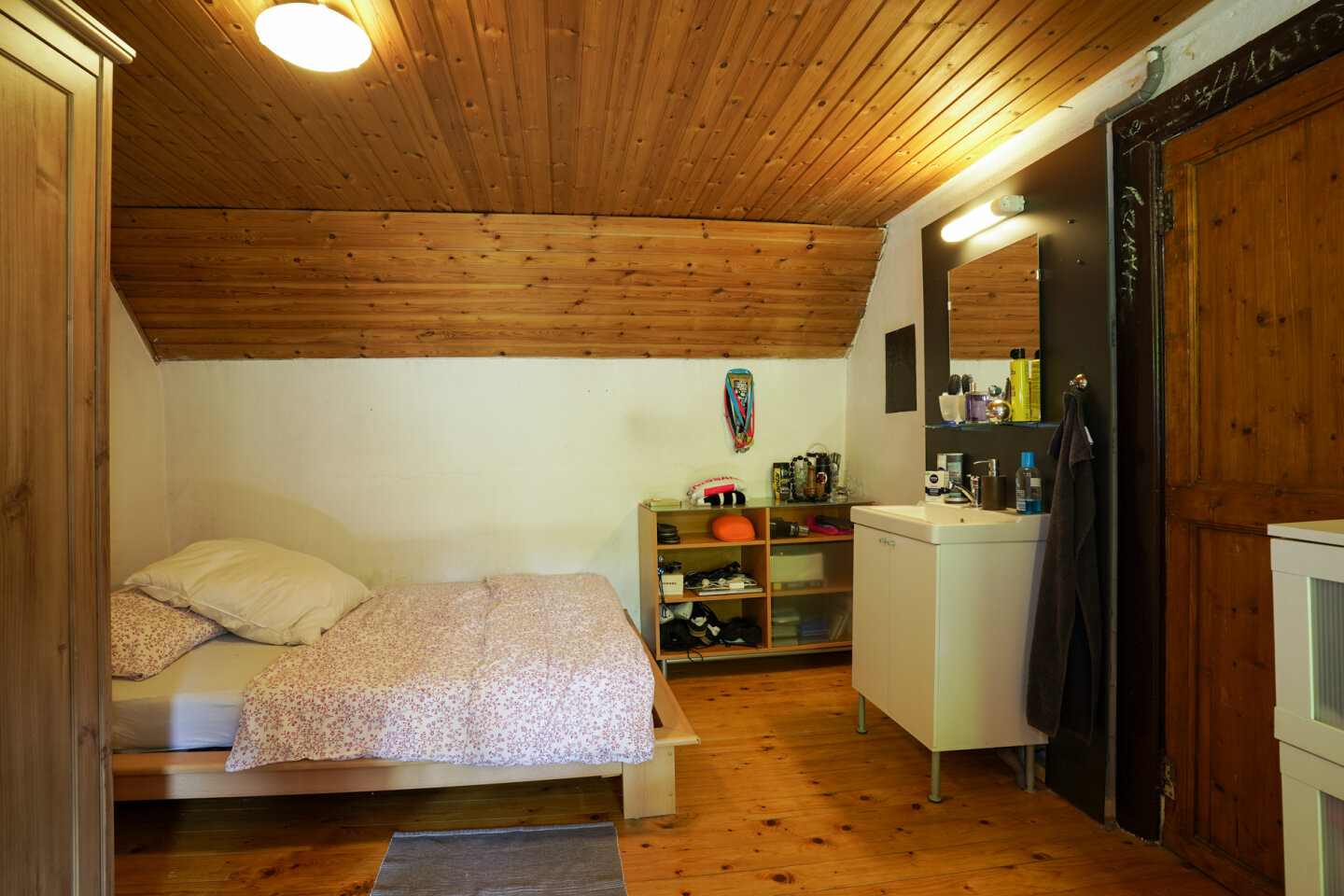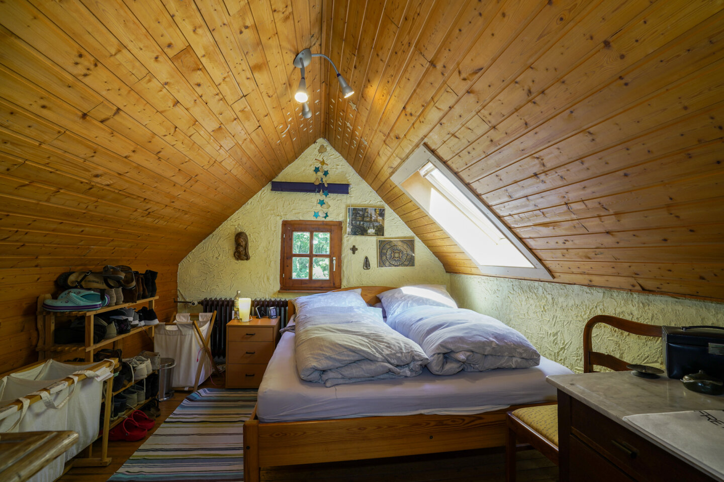 Slaapkamer I (19m2) met een ruimte besparende trap naar een zolderkamer (8m2). Overloop/kantoor (18m2) met trap naar de badkamer, zolder en toegang tot slaapkamers II en III. Slaapkamer II (19m2) en slaapkamer III met spits dak (8m2).