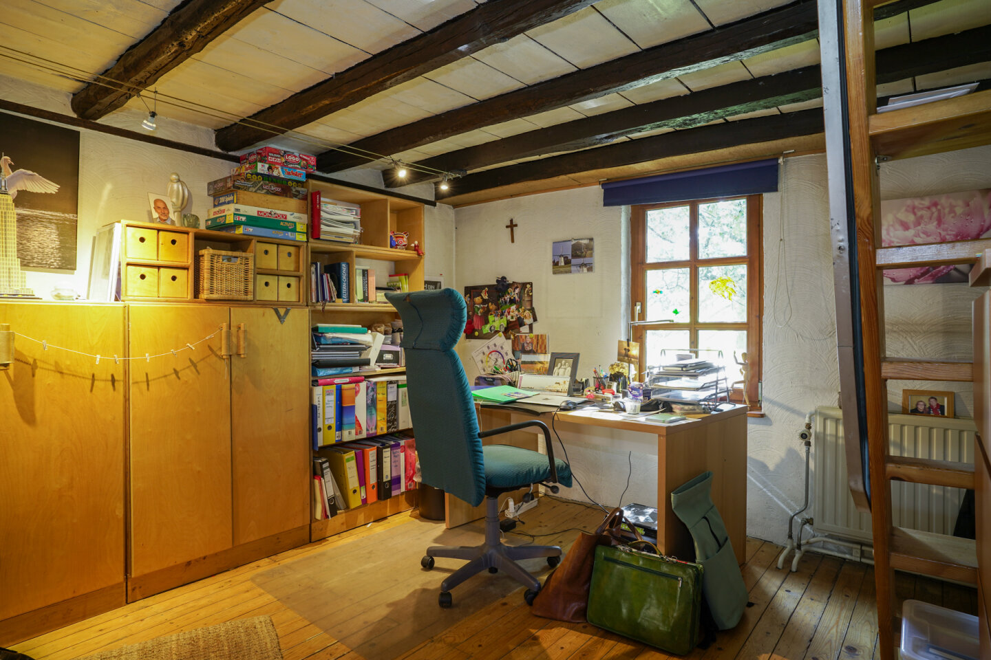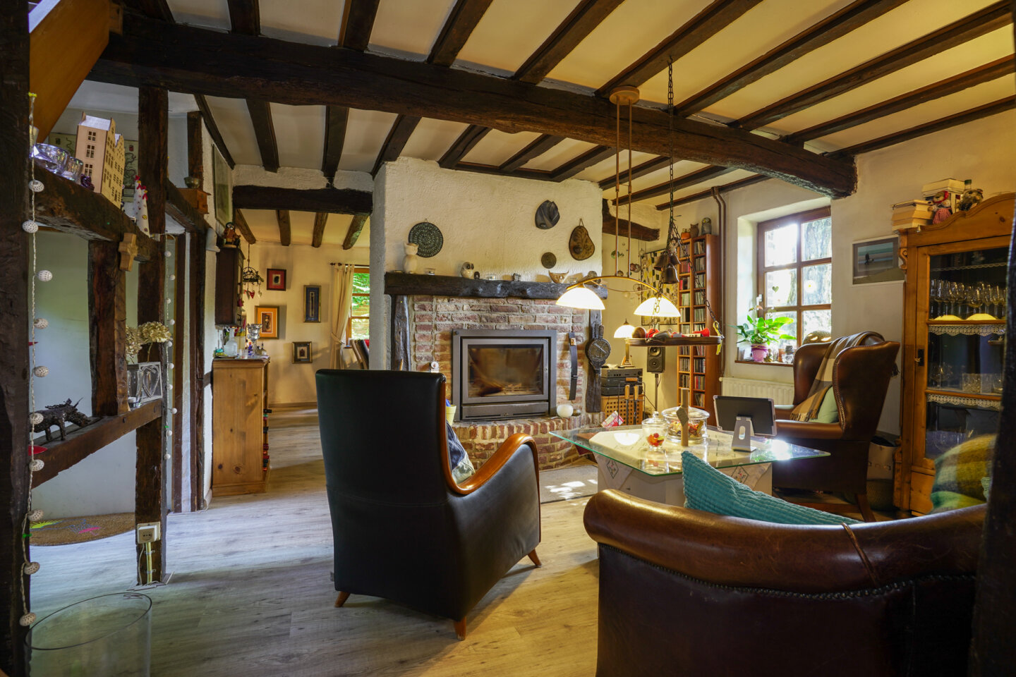 Overloop/Tweede woonkamer (22m2) met royale houtkachel en toegang naar overloop/kantoor en slaapkamer I.