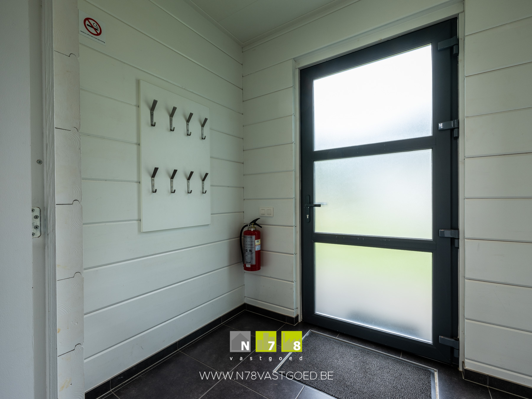 - Inkomhal: garderobepaneel, tegelvloer.