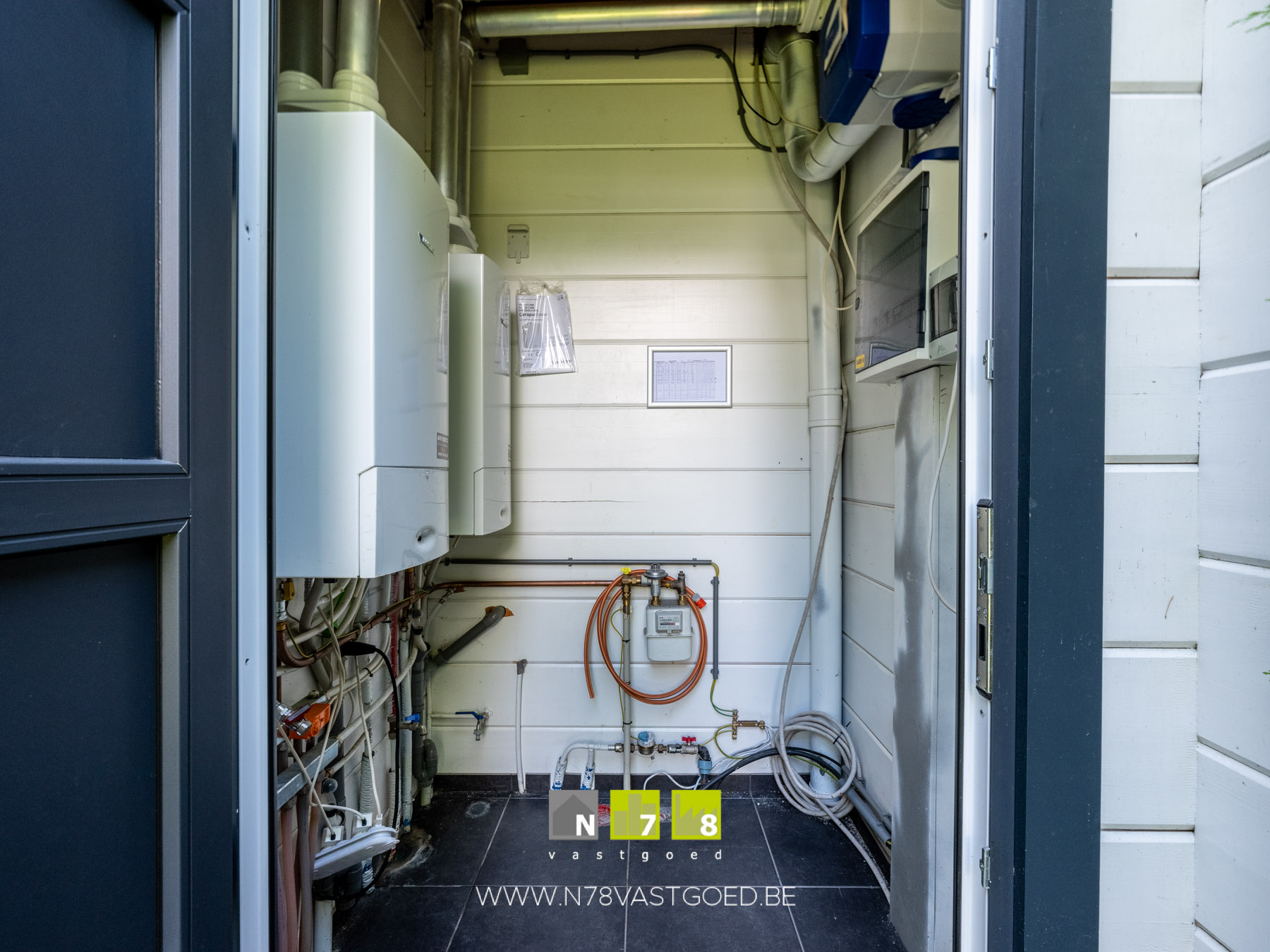 - Berging en CV-ruimte: tegelvloer.