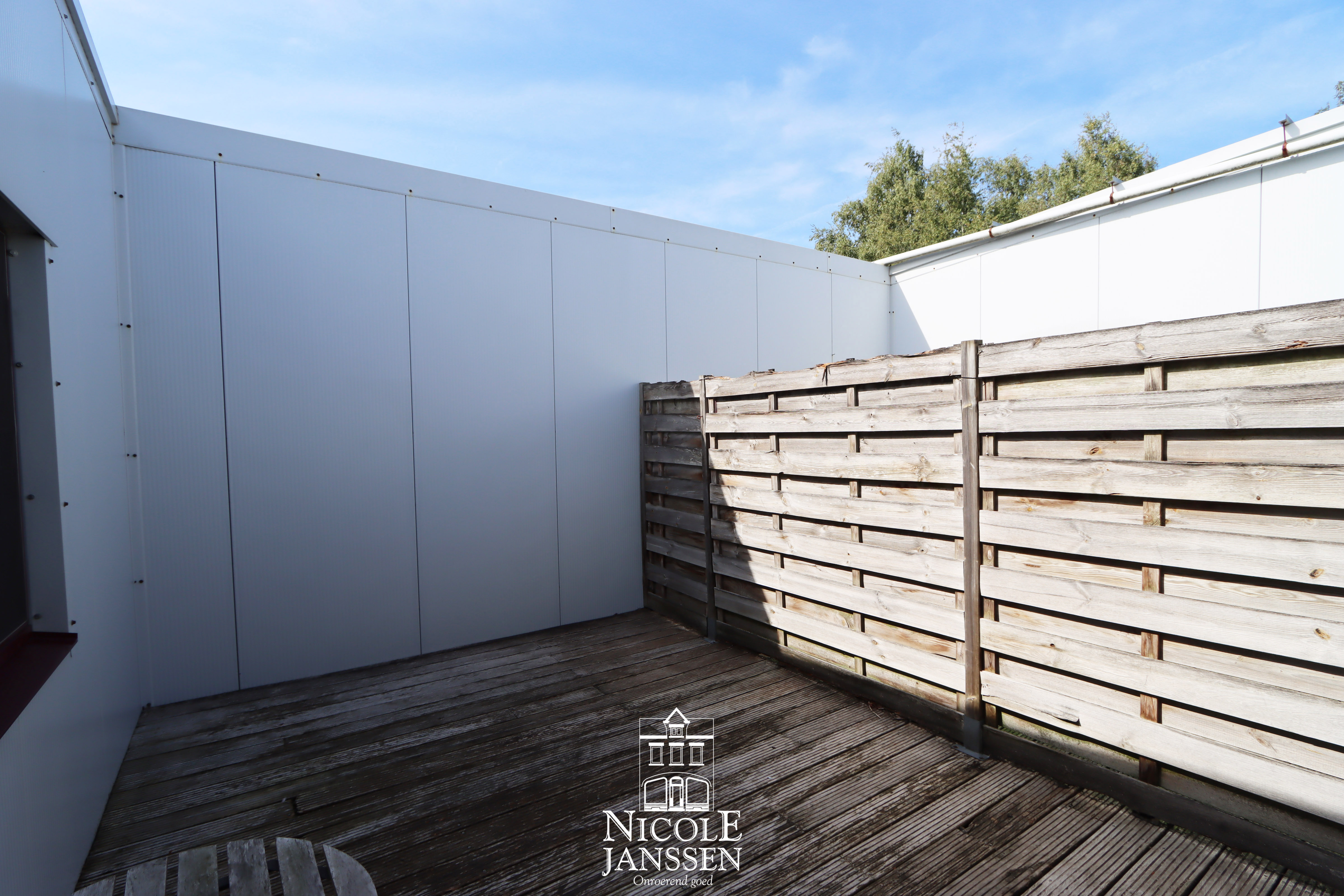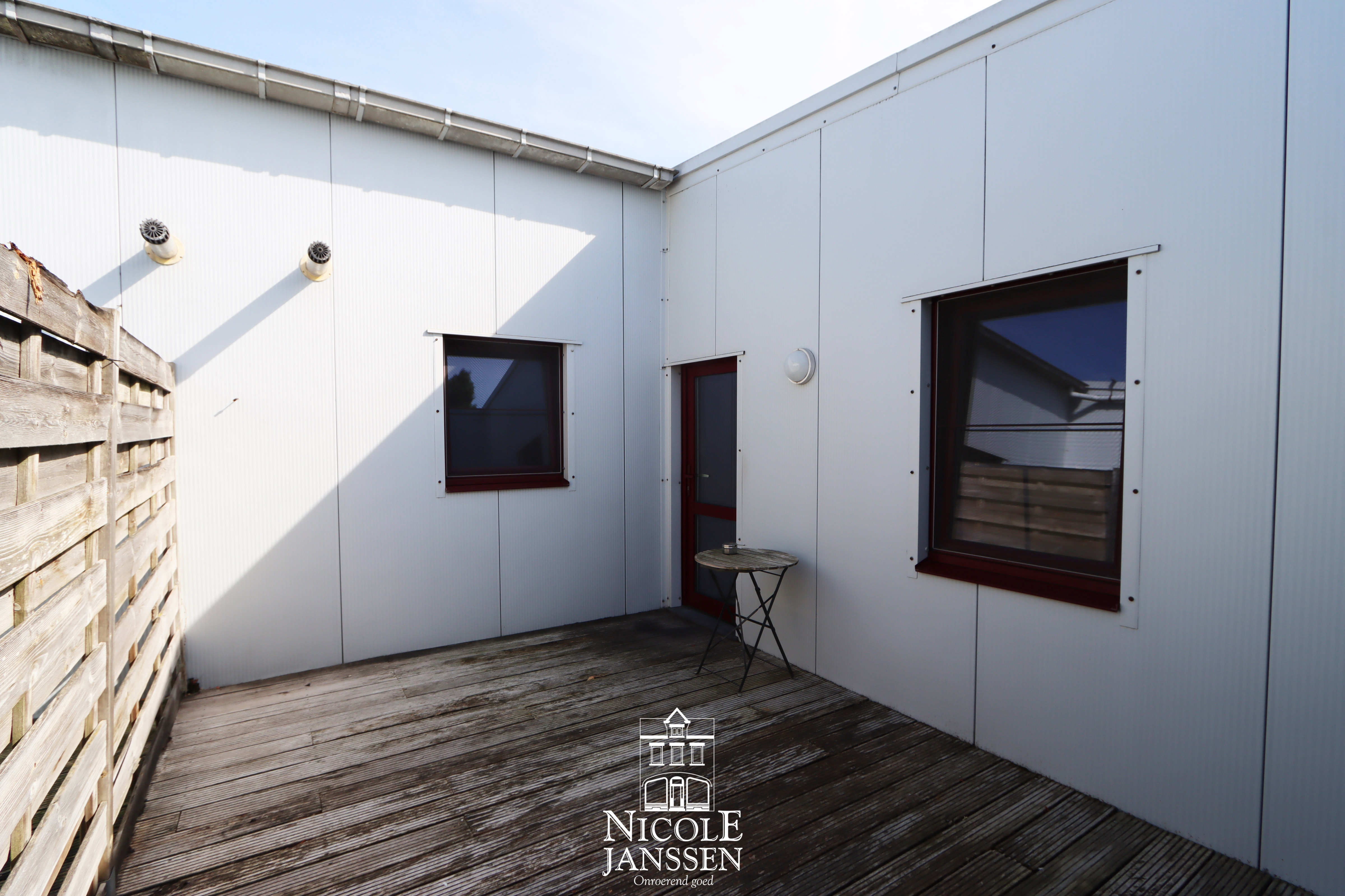 Aan de achterzijde bevindt zich een grote poort, ideaal voor laden en lossen.