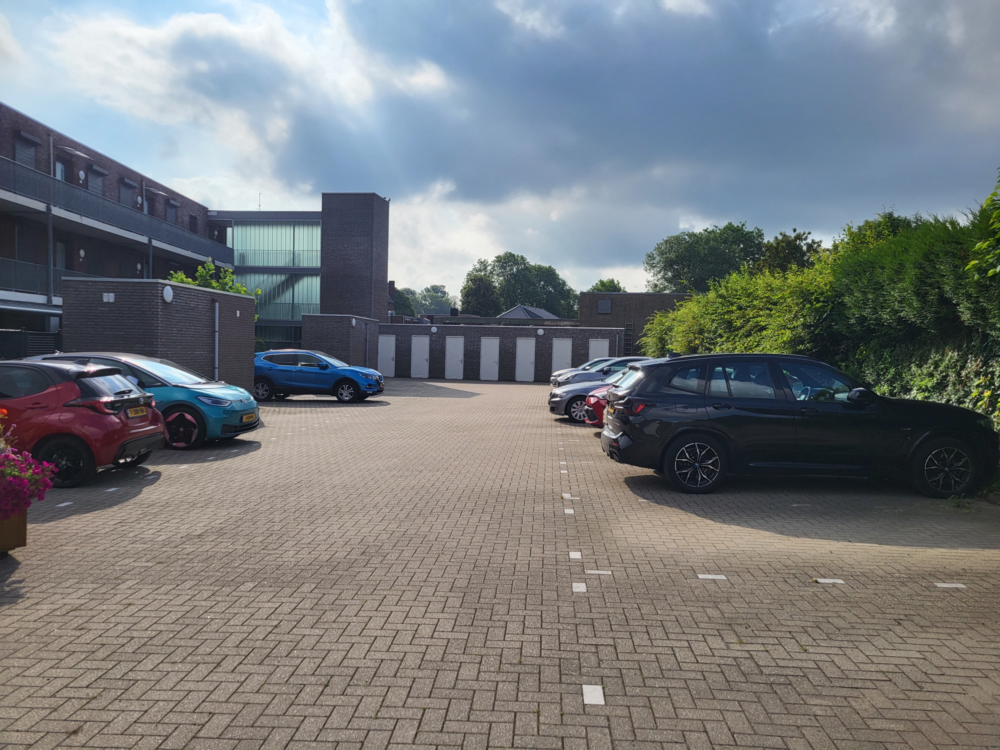 Privé parkeerplaats. Middels de achterzijde is de berging te bereiken. De berging is ca. 5 m² groot.
