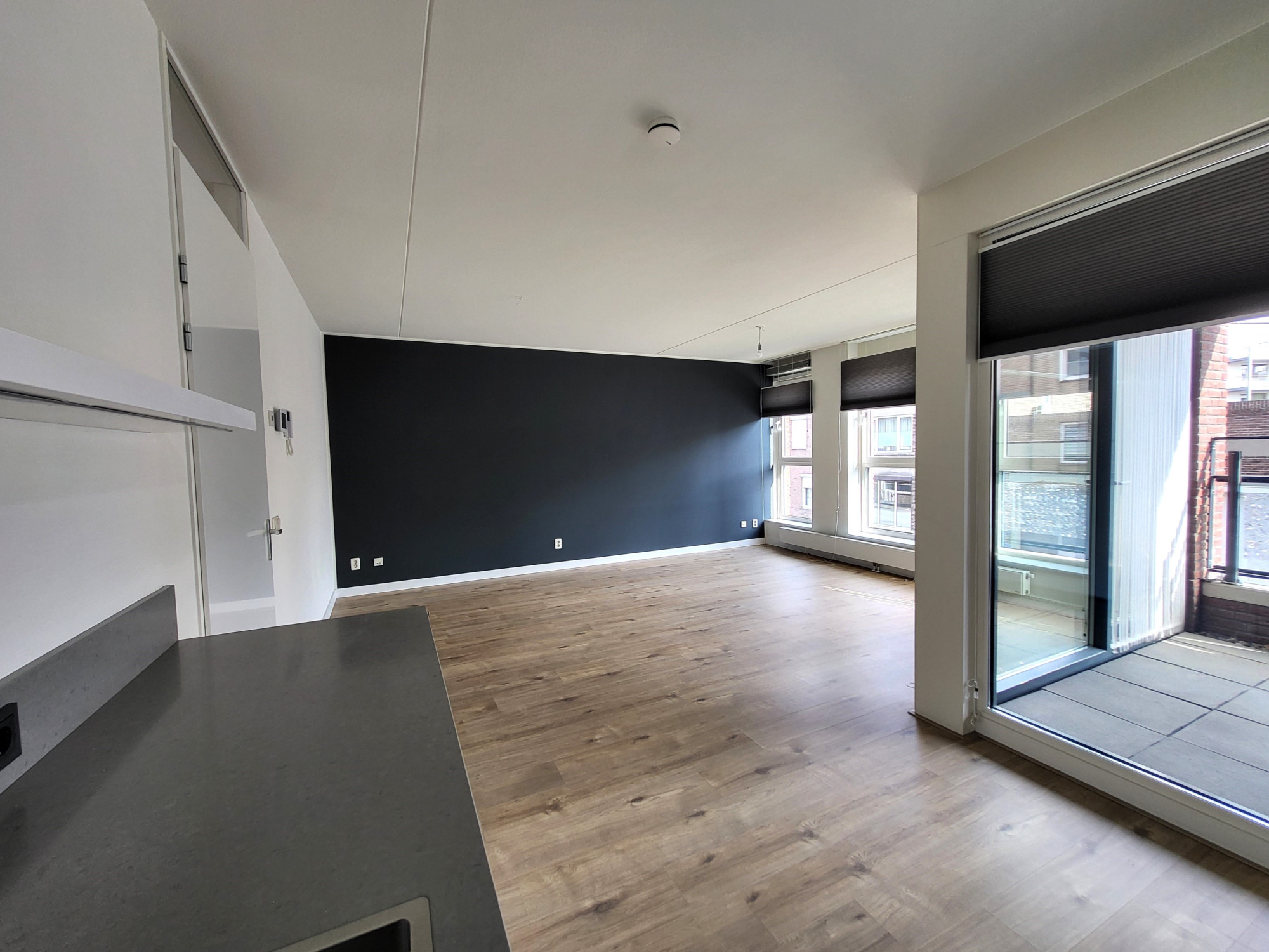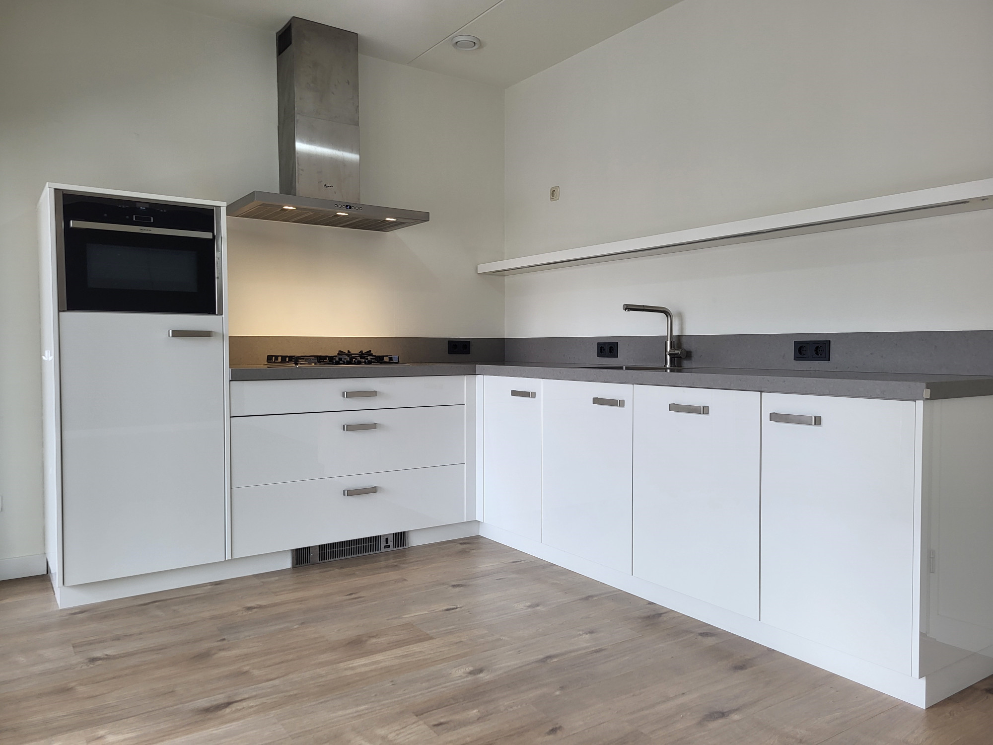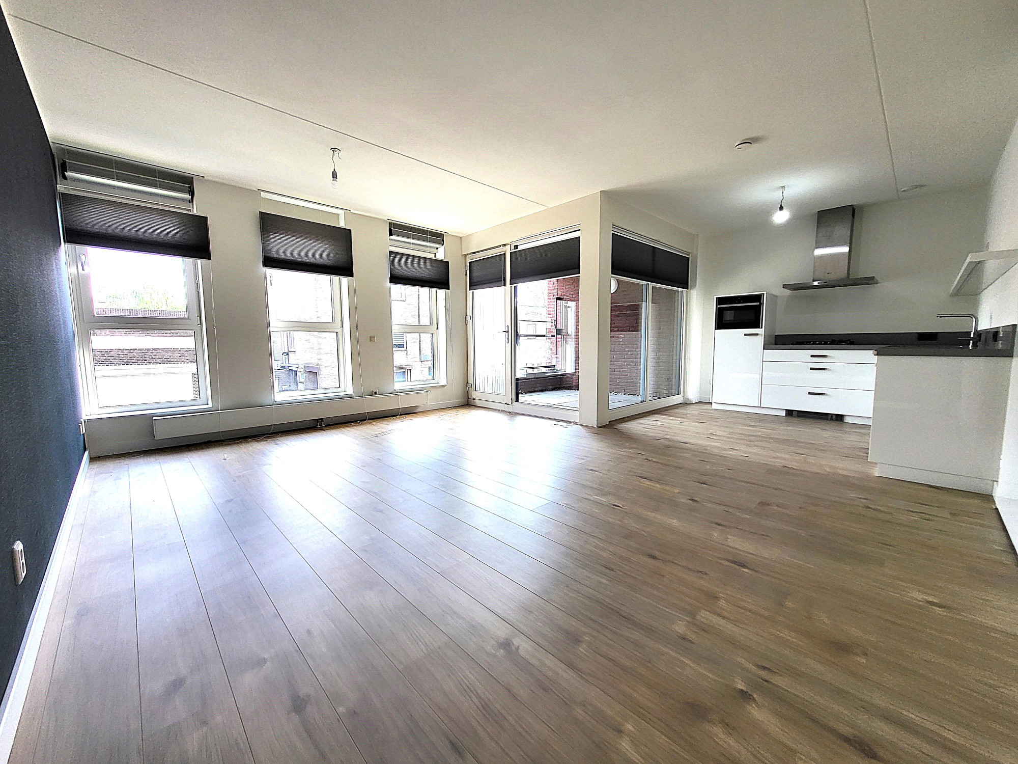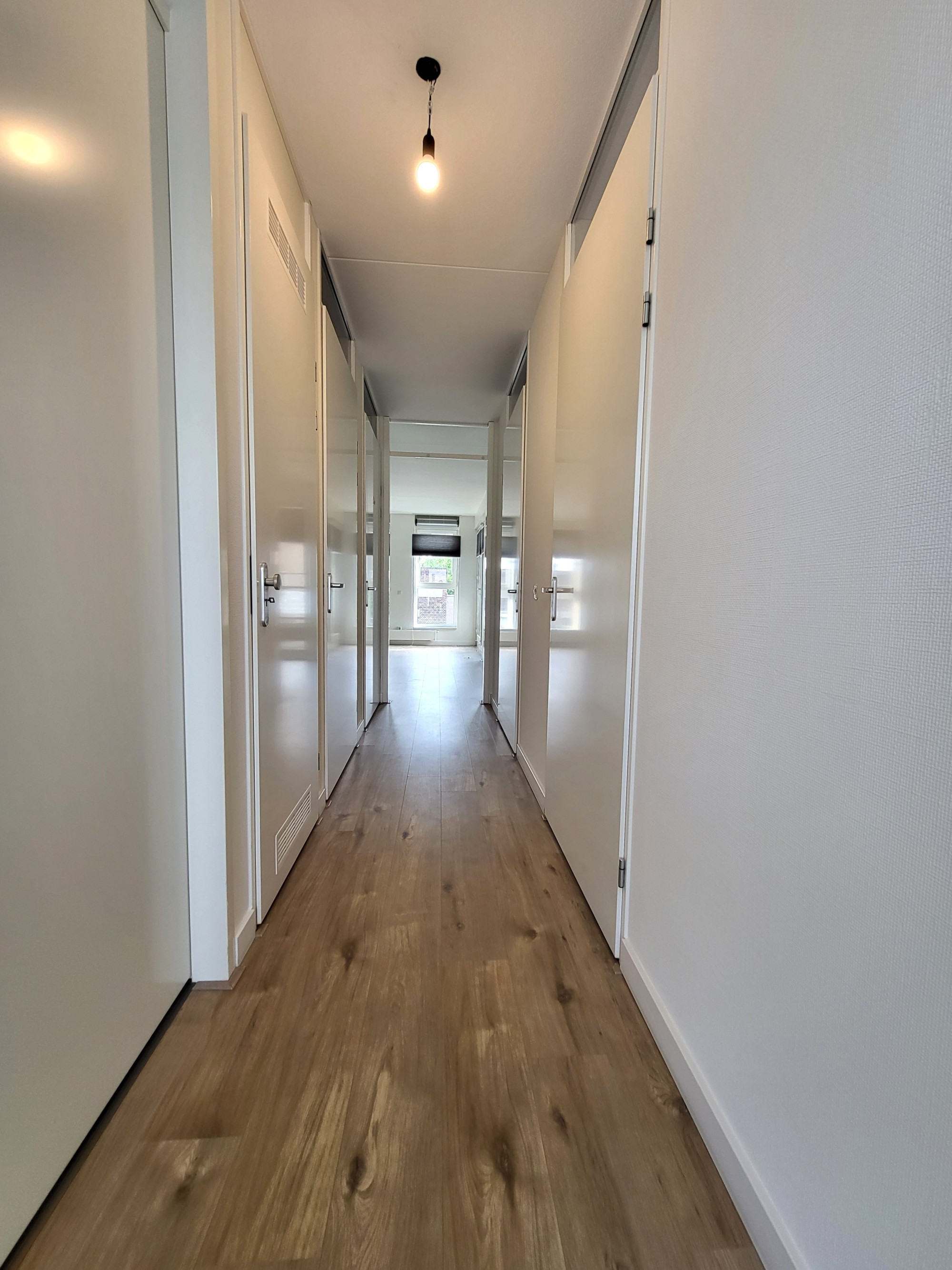 Middels galerij bereikbare entree. Via de hal zijn alle vertrekken van het appartement te bereiken. De moderne woonkamer en open keuken (circa 32m2) zijn voorzien van een hoogwaardige laminaatvloer. De moderne keuken in hoekopstelling is voorzien van een 4 pits gasfornuis, oven, vaatwasmachine, inbouw koelkast en afzuigkap. De twee slaapkamers van respectievelijk 12m2 en 10 m2 zijn aan de galerij zijde gelegen en beiden voorzien van elektrische rolluiken. De volledig betegelde badkamer is voorzien van een inloopdouche en vaste wastafel. De cv/wasruimte is circa 6m2. Volledig betegelde toiletruimte met zwevend toilet en fonteintje.