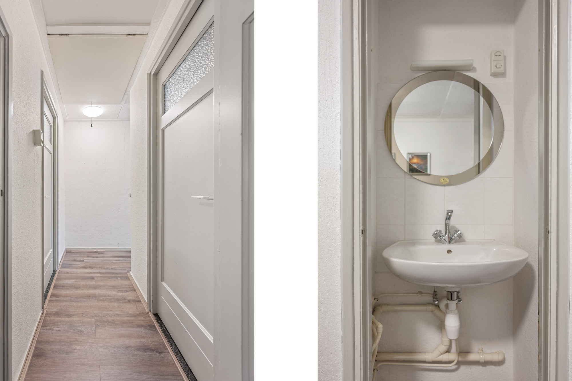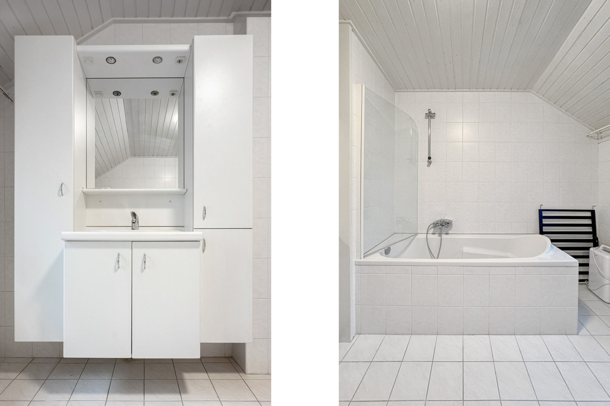 Overloop met toegang tot badkamer en twee slaapkamers, respectievelijk: