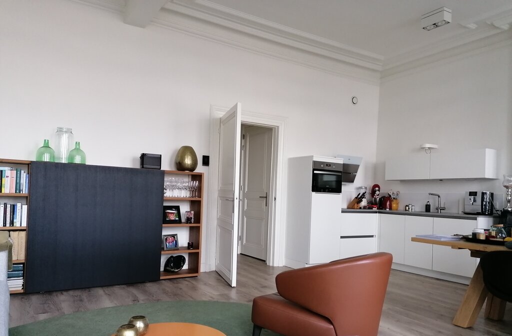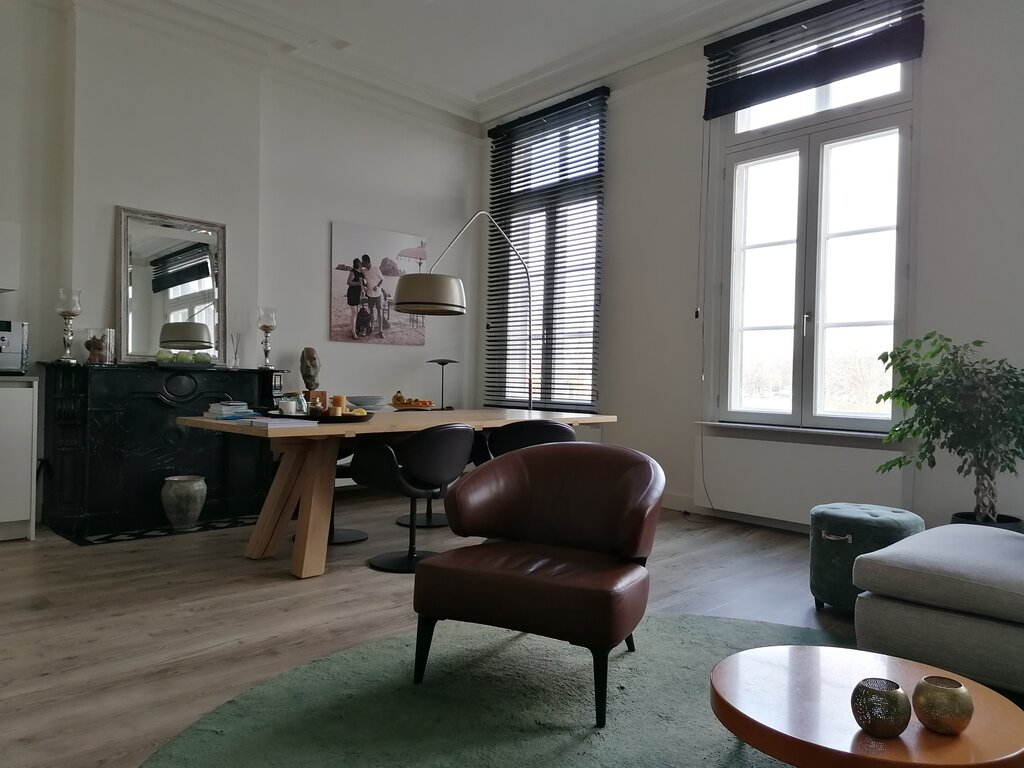 In 2017 nieuw gerealiseerd luxe appartement met lift en dakterras op de eerste verdieping van een statig herenhuis in hartje centrum Maastricht en met vrij uitzicht over de Maas.