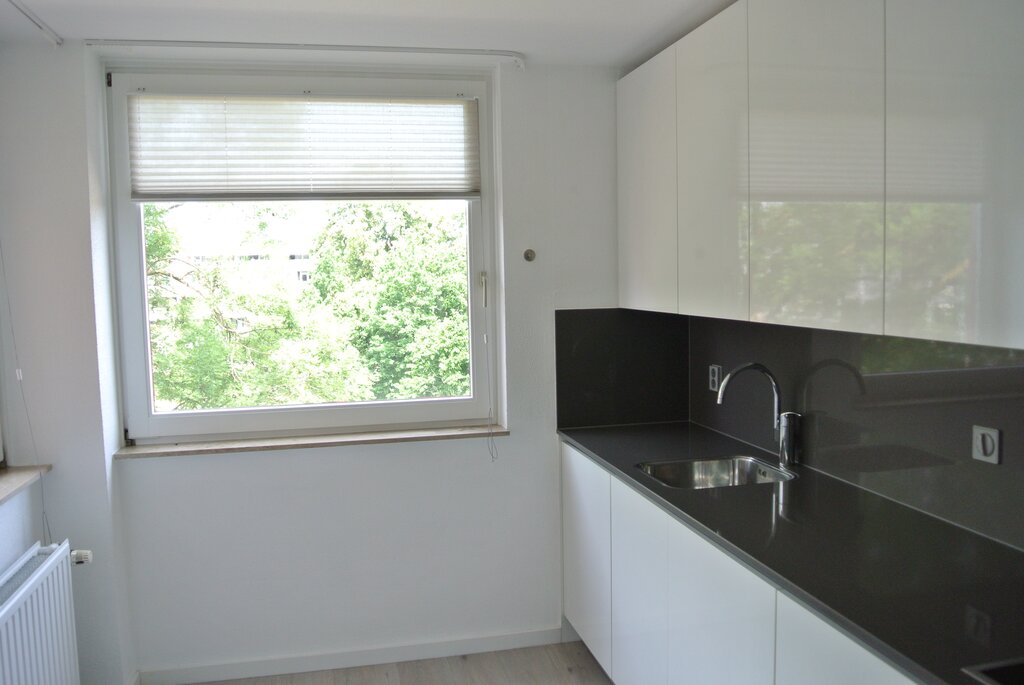 - De luxe open keuken biedt uitzicht op het park aan de achterzijde en is voorzien van inbouwapparatuur zoals een keramische kookplaat, afzuigkap, combi magnetron en een koelkast.