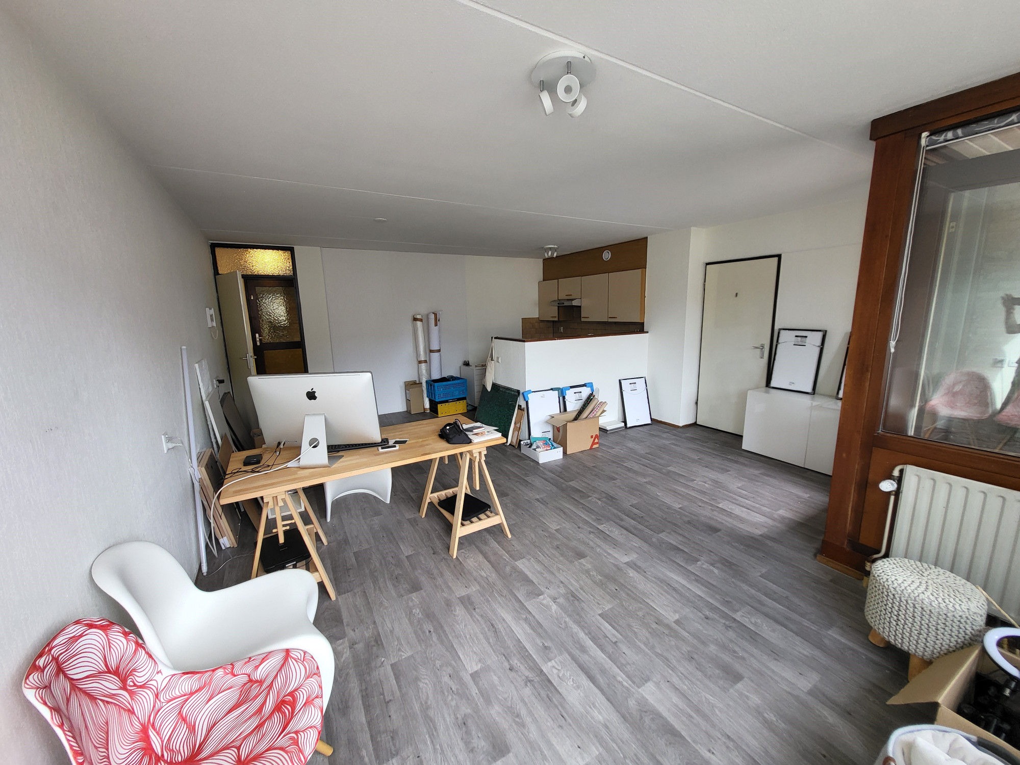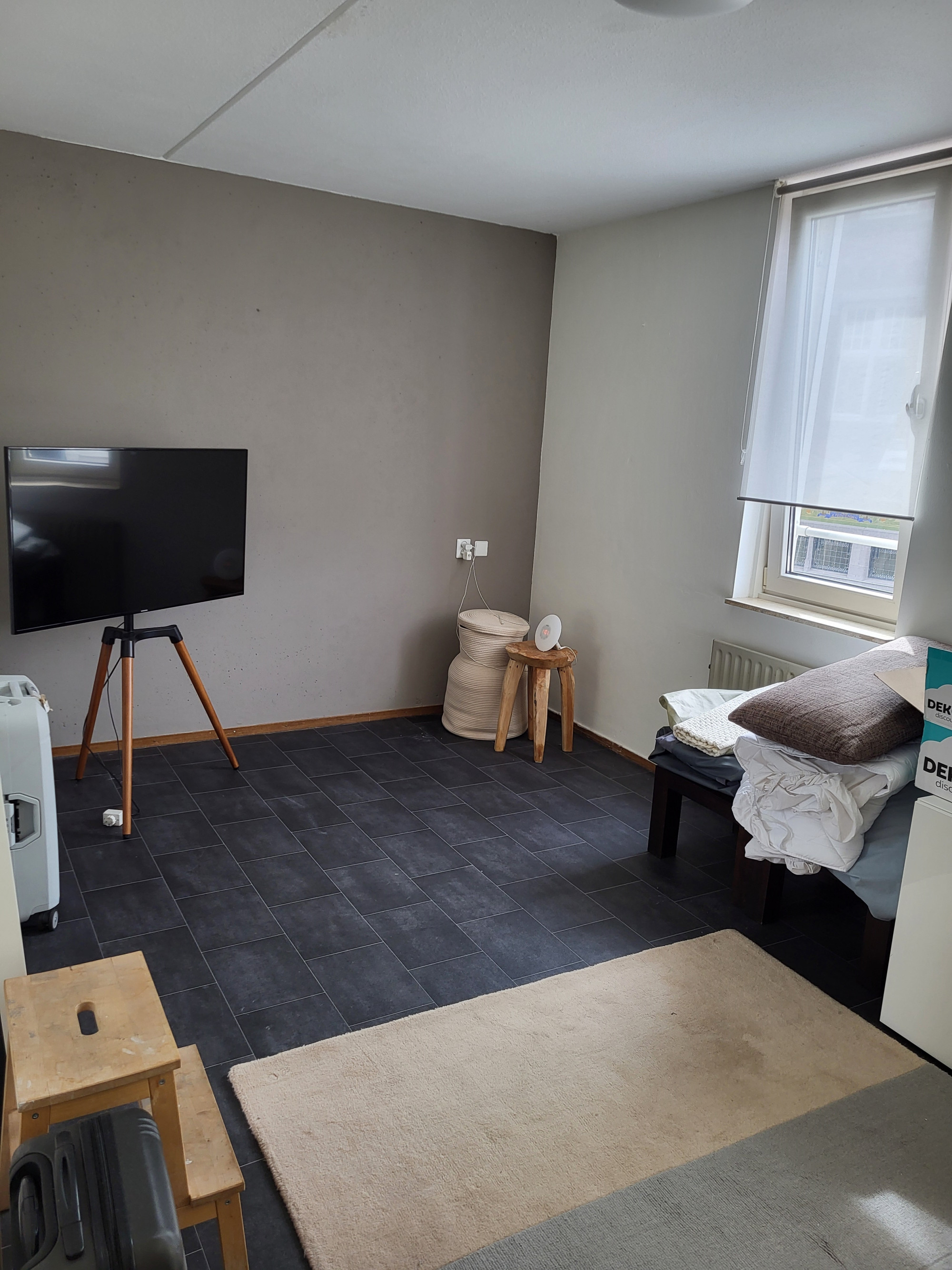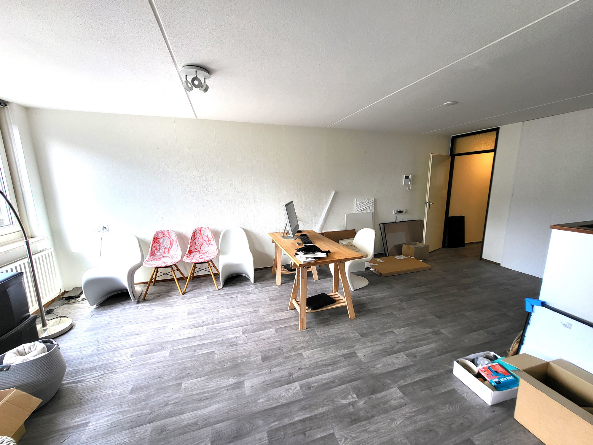 * De vinylvloer en de rolgordijnen voor de ramen kunnen gratis worden overgenomen van de huidige huurster.