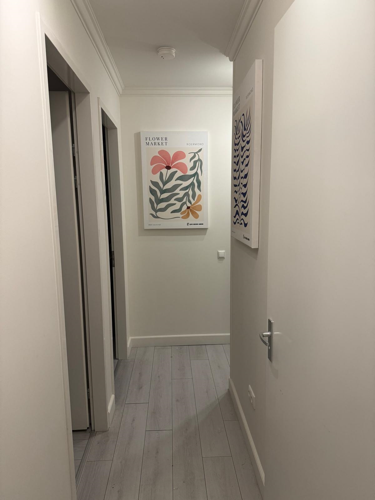 Entree, ruime woonkamer (22 m2) met open keuken voorzien van inductieplaat, afzuigkap, koelkast met vriesvak, combimagnetron en een vaatwasser. Het appartement heeft 2 slaapkamers van 12 en 7 m2 en een berging van 5 m2. De badkamer is voorzien van een vaste wastafel en een douche. Er is een afzonderlijk toilet. Er is een wasmachine aanwezig.