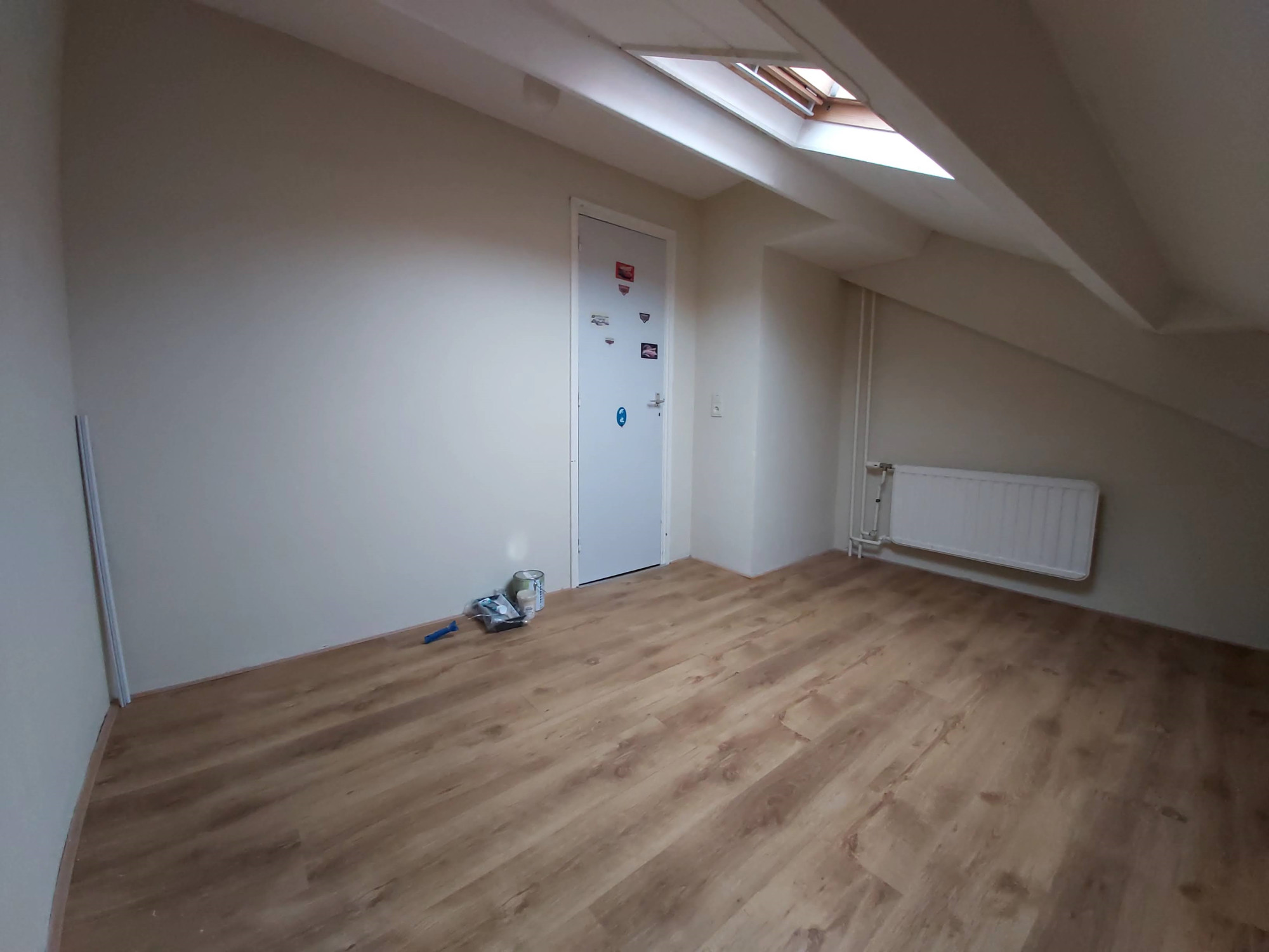 In tegenstelling tot de foto's is het appartement volledig opnieuw wit uitgeschilderd.
