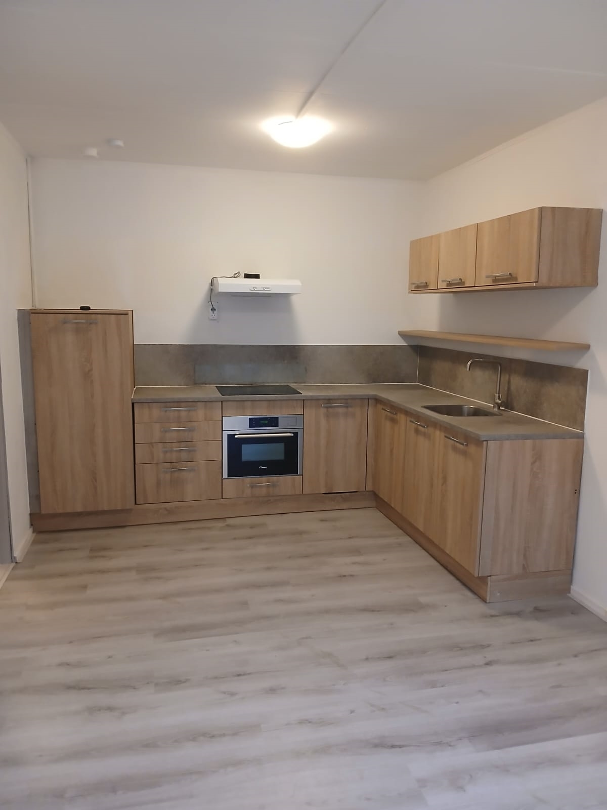 Het gehele appartement is voorzien van een nieuwe laminaatvloer en opnieuw wit uitgeschilderd. De woonkamer met open keuken is circa 17m2. De nieuwe keuken in hoekopstelling is voorzien van een 4 pits fornuis, afzuigkap en oven. De badkamer is voorzien van een douche, wastafel en toilet. De aansluiting voor de wasmachine bevindt zich in de gezamenlijke hal welke je deelt met 1 medebewoner.