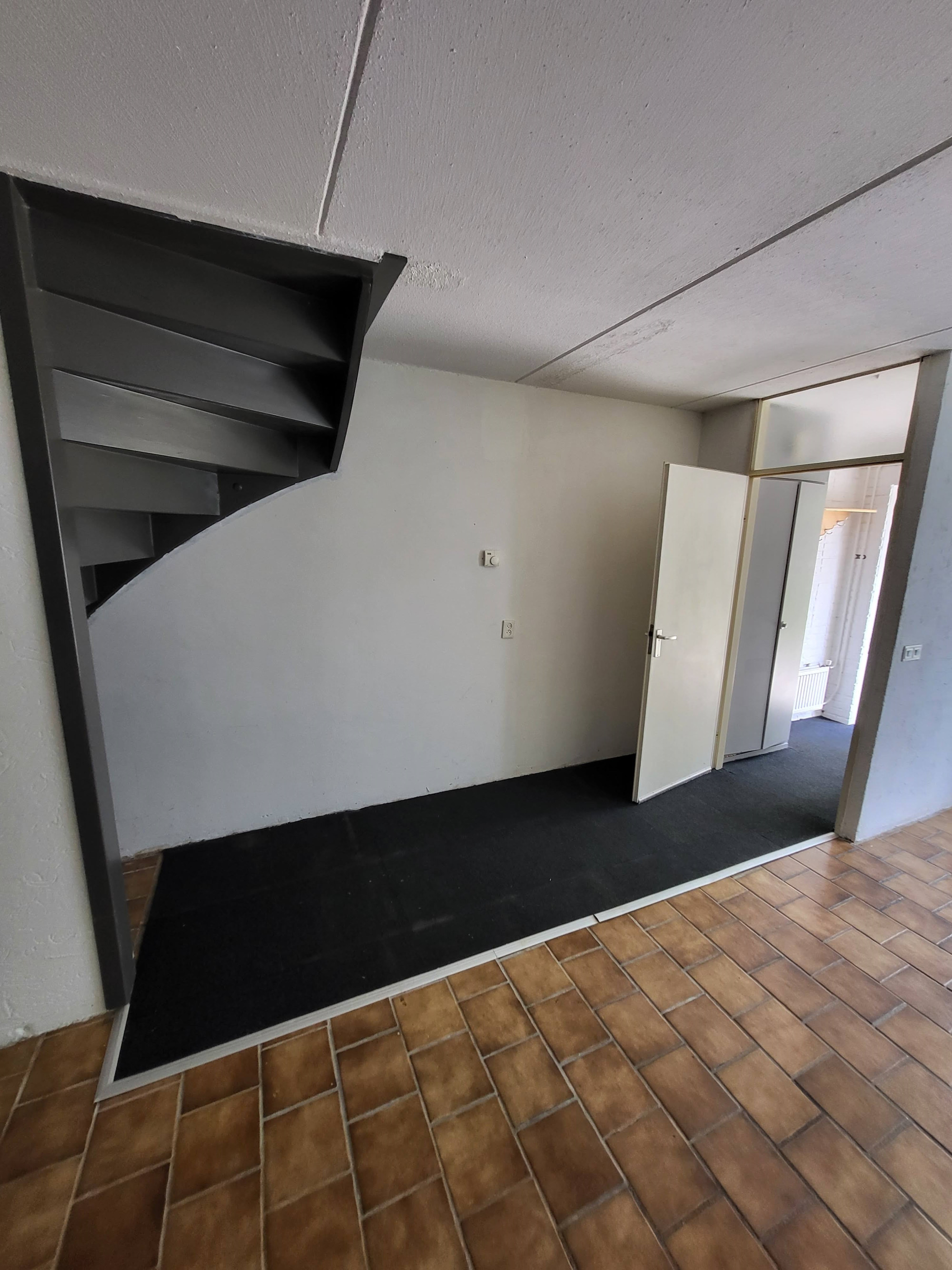 Portaal met trap naar verdieping en toegang bergruimte(1,54 x 3,21m = ca. 4,94 m²) voorzien van elektra.