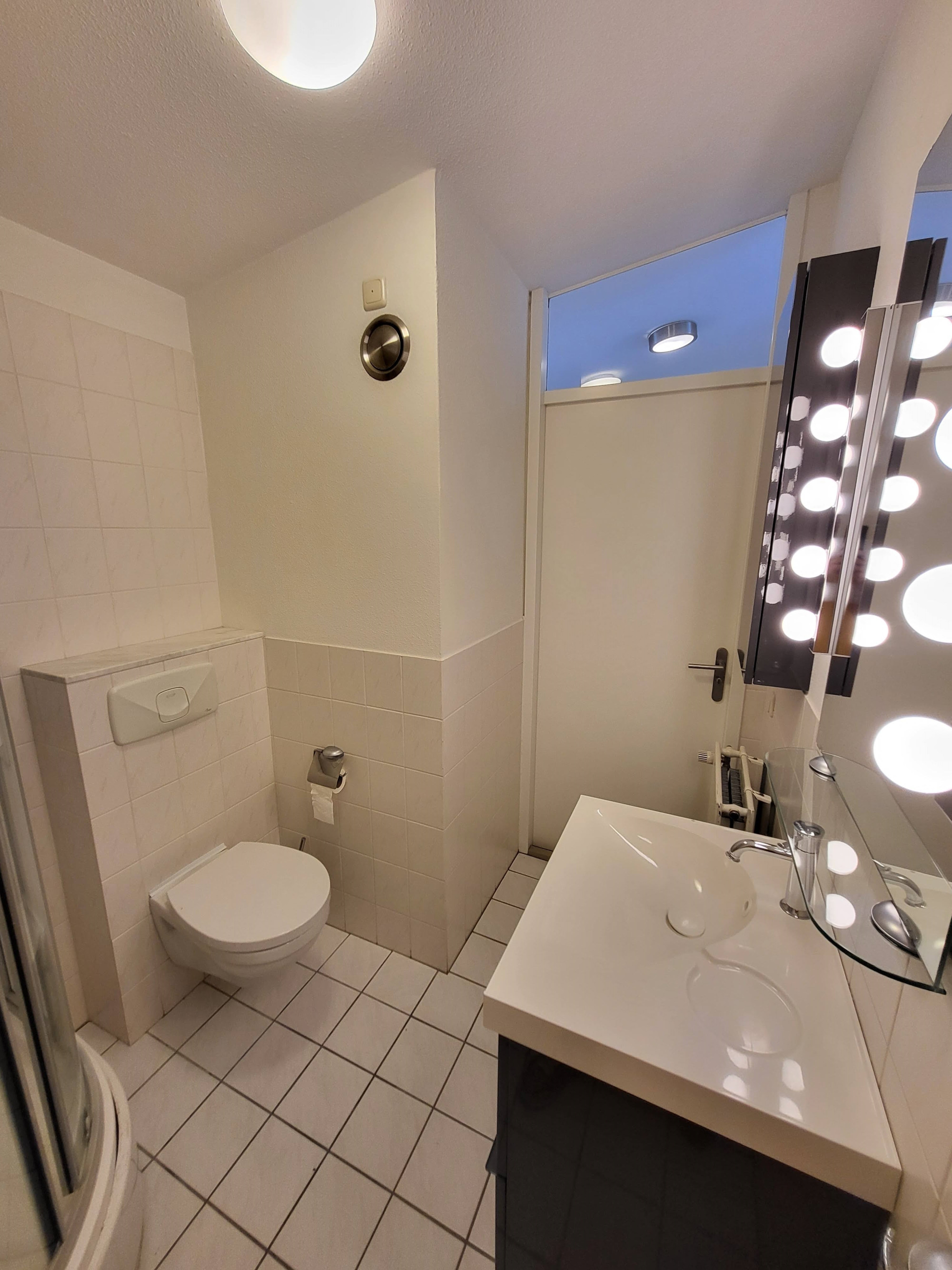 De badkamer (4,5m2) is voorzien van een douche, zwevend toilet en wastafelmeubel met verlichting.
