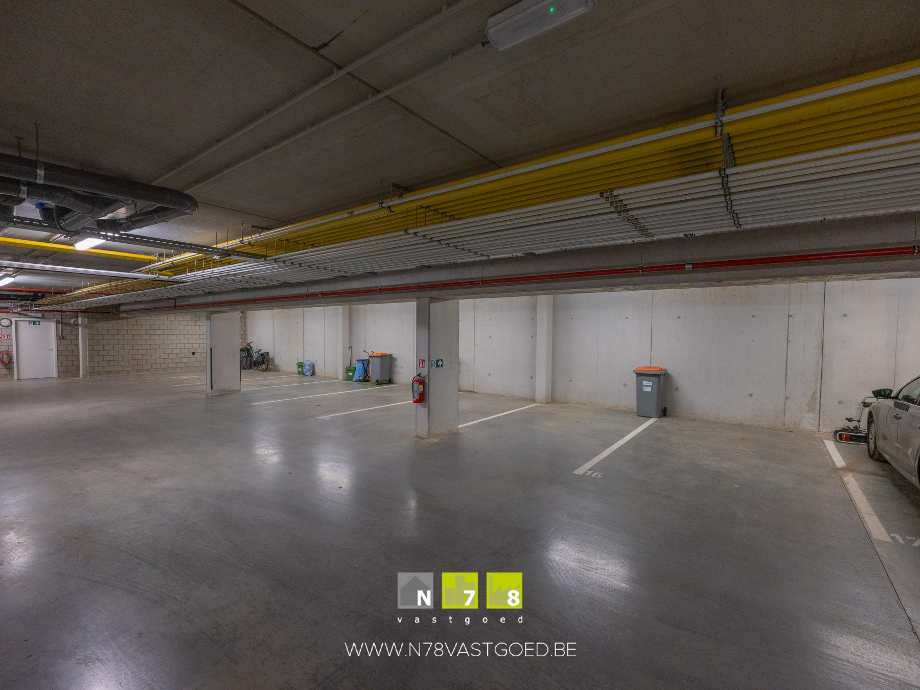 - Kelderruimte 1 (1,66m x 2,58m = 4,28m²): kelderberging A1-1.5 en autostaanplaats 14 +15, fietsberging, betonvloer.