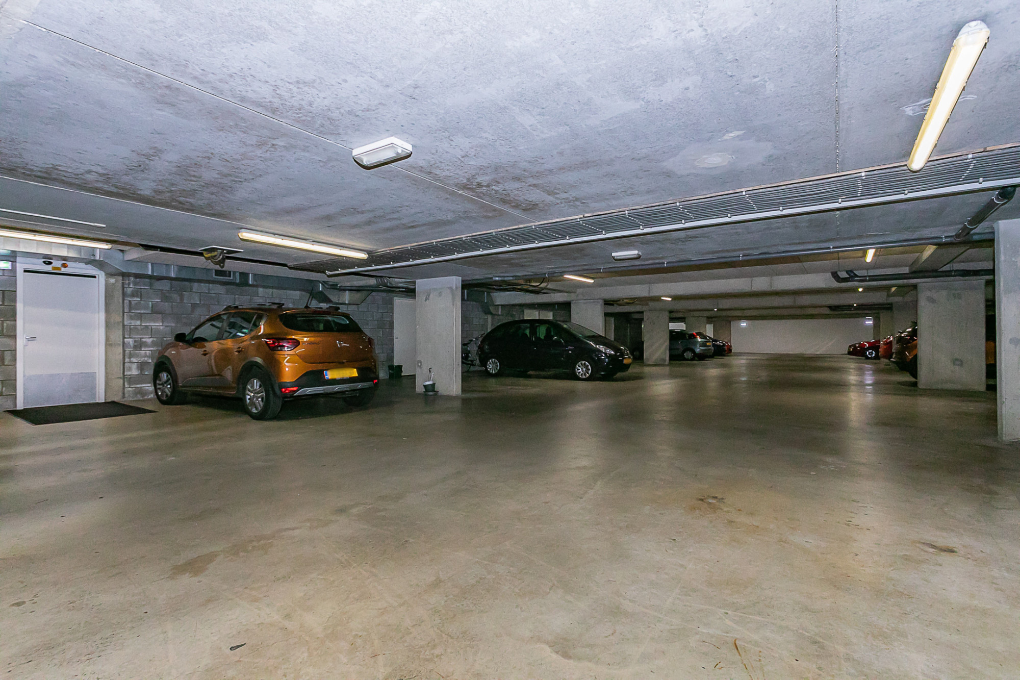 Eigen parkeerplaats in de afgesloten ondergrondse parkeergarage toegankelijk aan de voorzijde van het complex, kelderberging (3,05m x 1,70m x 2,40m), lift en trappenhuis naar de begane grond.