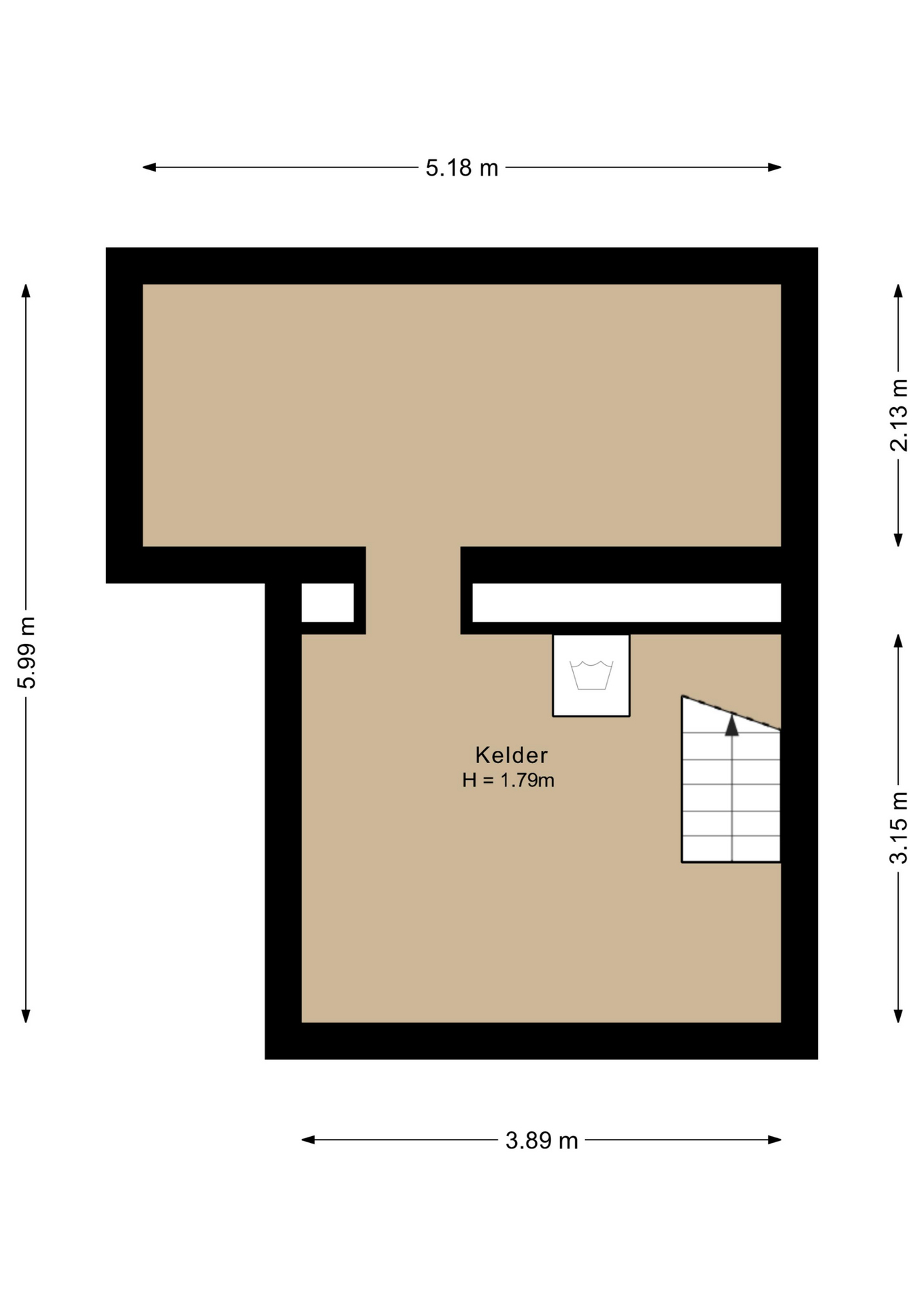 In het souterrain bevindt zich een kelderruimte. Hier is de aansluiting voor de witgoedapparatuur en bergruimte gesitueerd.