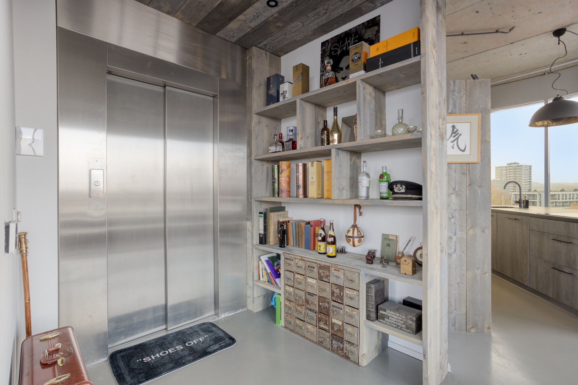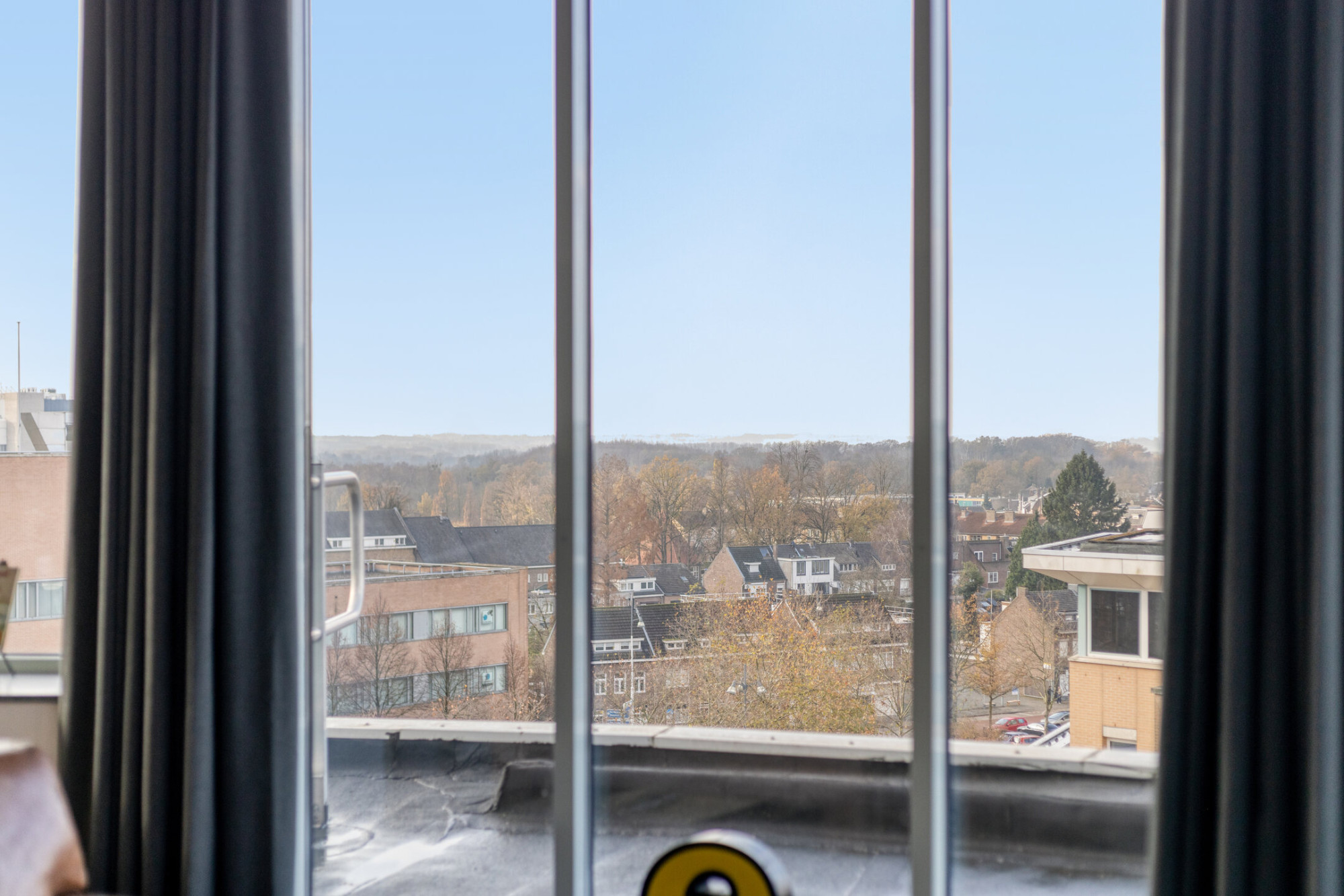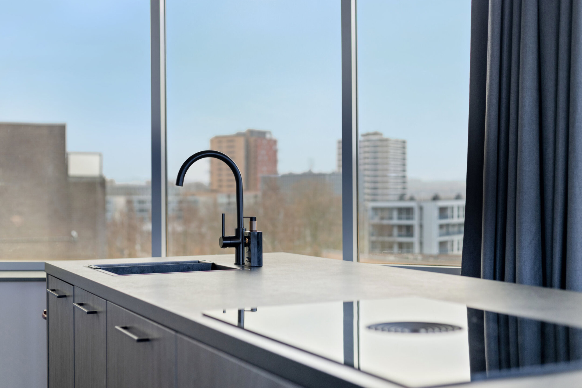 De lift brengt u rechtstreeks naar de zesde verdieping, waar de loft zich als een penthouse onthult. Circa 60 m² aan open, lichtovergoten leefruimte ontvouwt zich rondom u, omlijst door grote raampartijen die het Heuvelland tot onderdeel van het interieur maken. De hoogwaardige epoxyvloer in combinatie met ingebouwde airconditioning (koelen én verwarmen) zorgt voor comfort in elk seizoen.