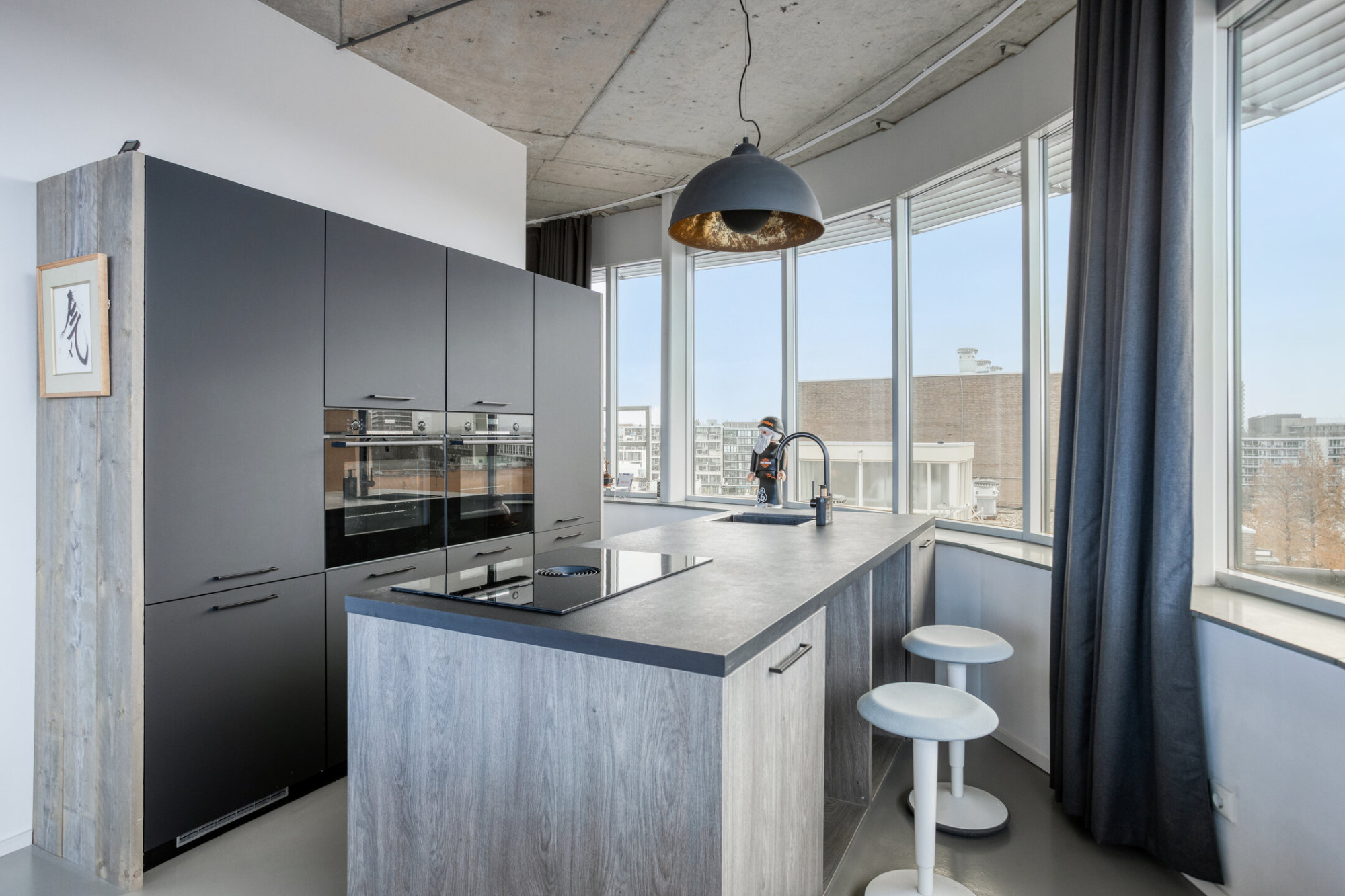 Aan de rand van het centrum, op de plek waar ooit de directiekamer van Libertel was gevestigd, bevindt zich nu een loftwoning die de zeldzame combinatie biedt van karakter, luxe en een adembenemend panoramisch uitzicht. Dit bijzondere penthouse, verdeeld over twee niveaus, ademt de sfeer van internationaal design en stedelijke elegantie — compact, stijlvol afgewerkt.