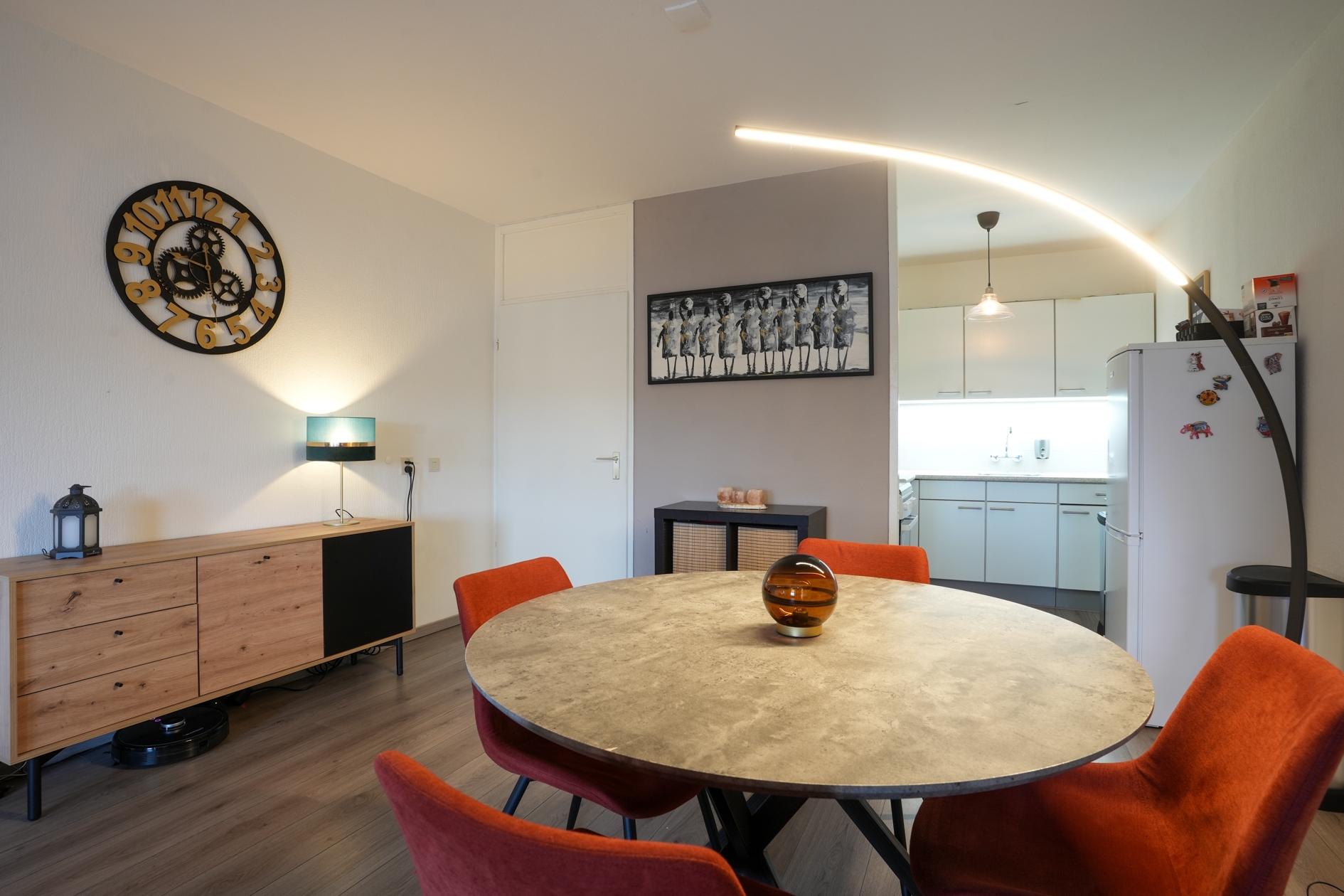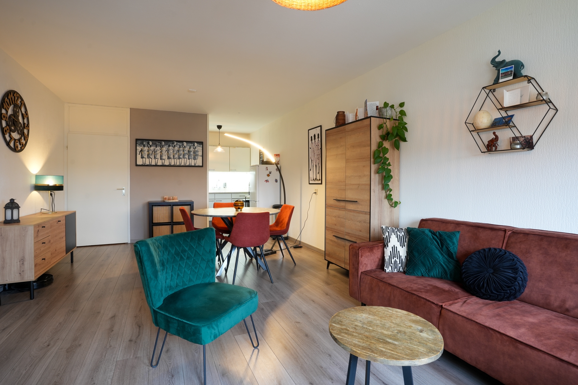 Ruime woonkamer met halfopen keuken van in totaal circa 32 m2.