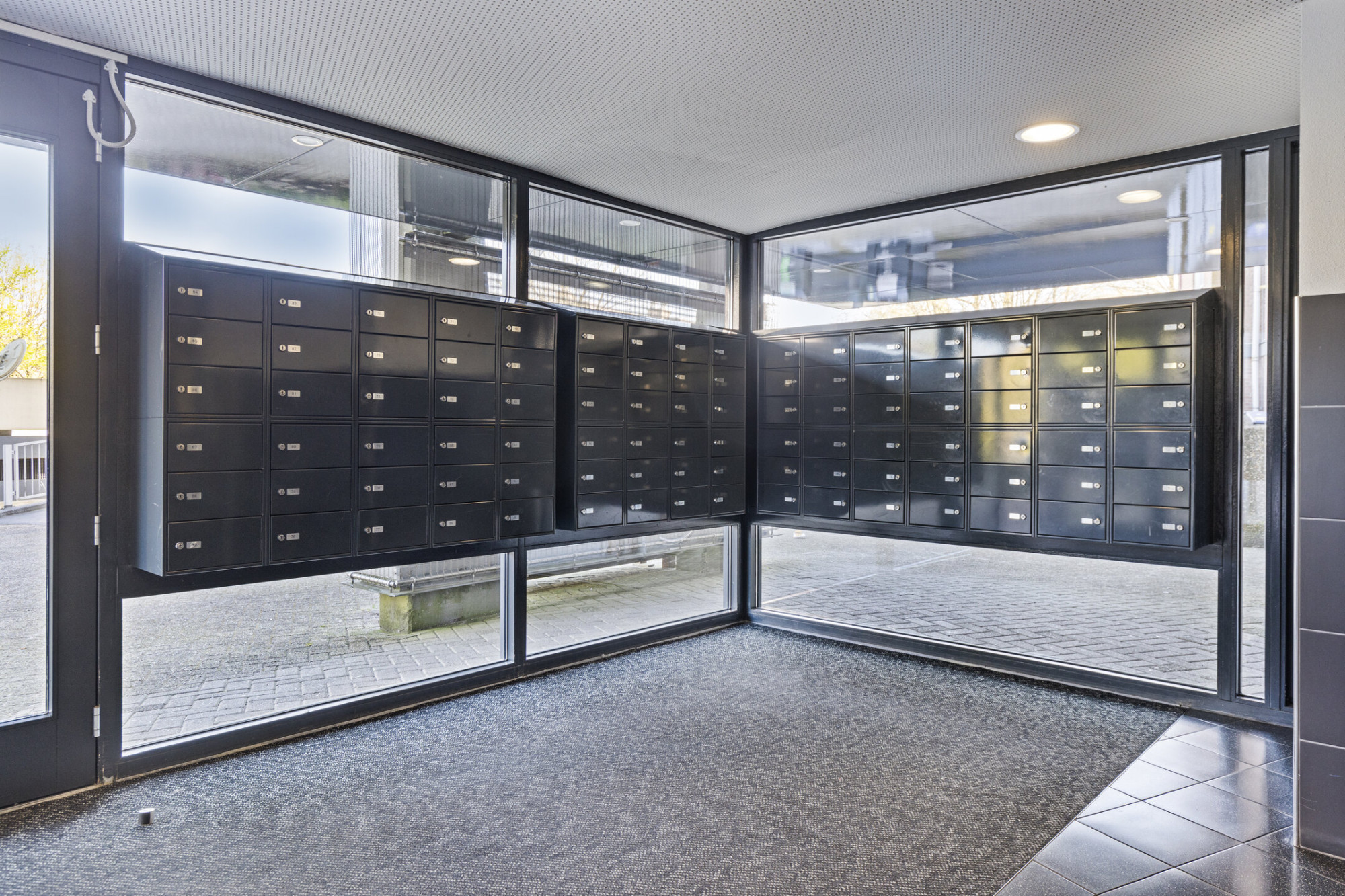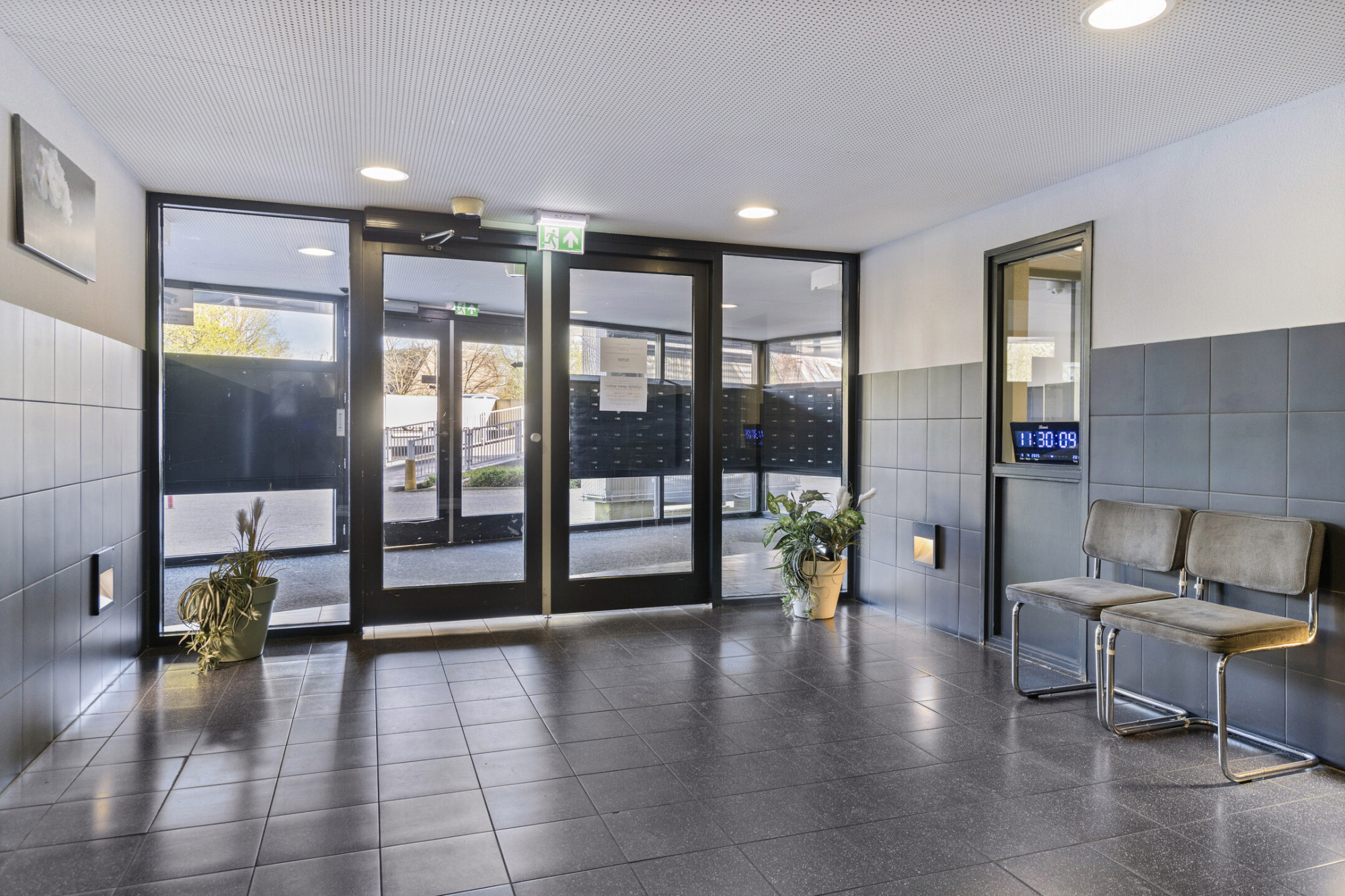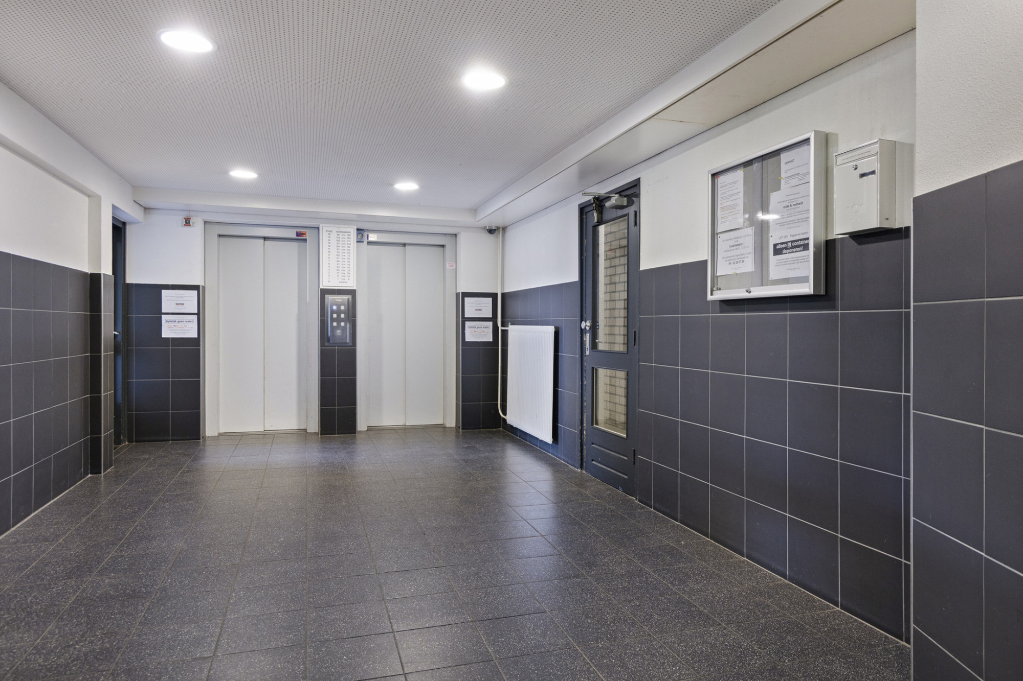 Centrale entree, fietsenberging, brievenbussen en 2 liften.