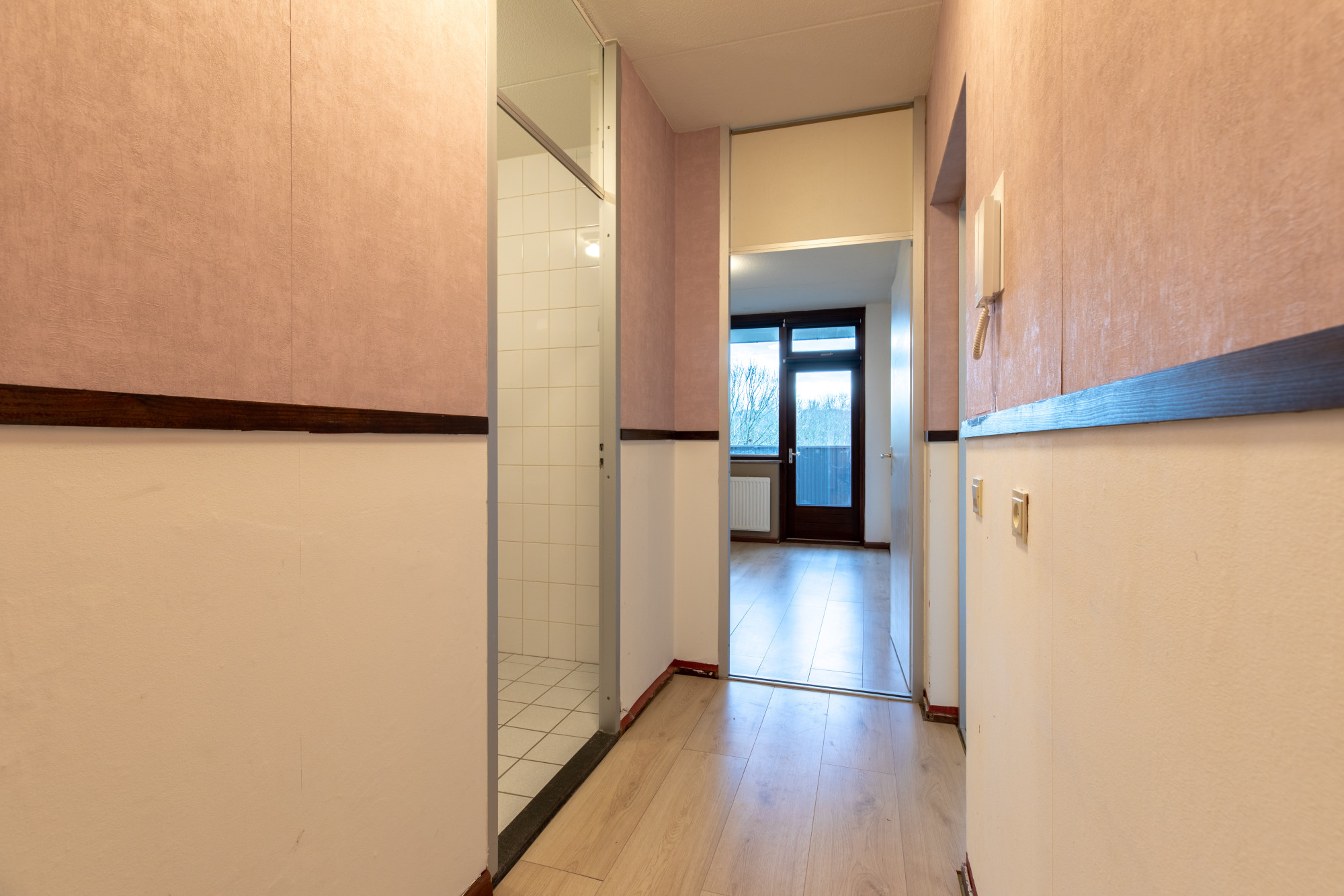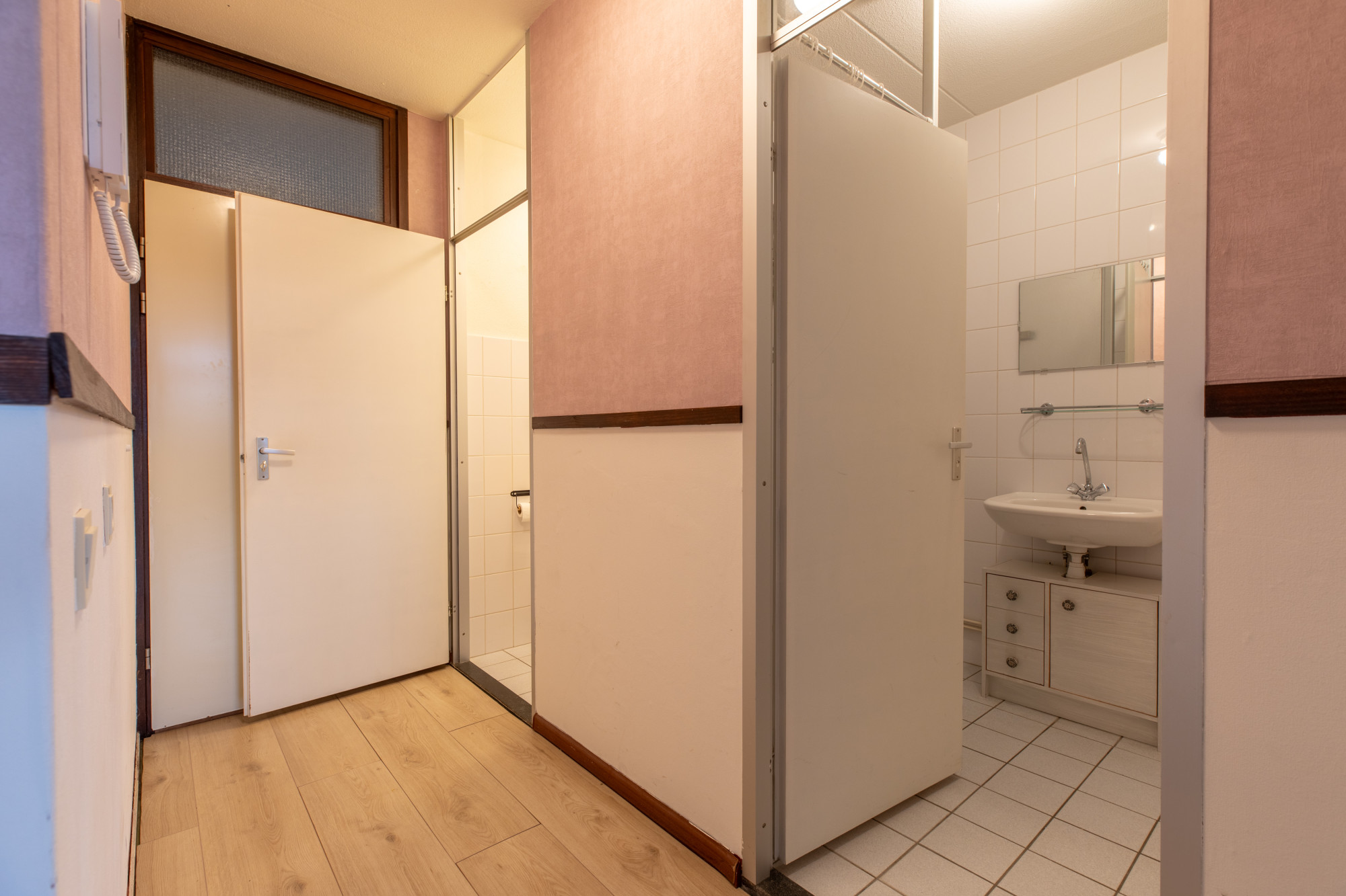 Op centrale woonlocatie gelegen 2-kamer appartement op de vierde verdieping met eigen parkeerplaats (nummer 37 in de parkeergarage) en eigen berging op de begane grond.