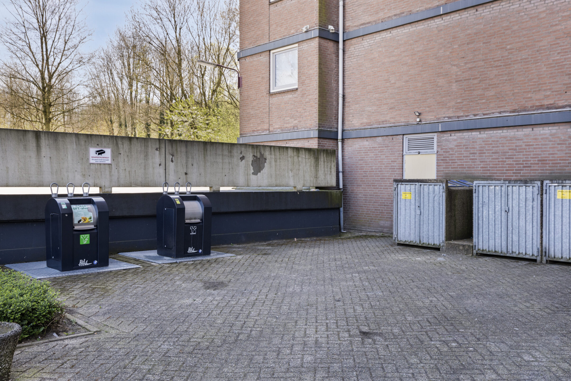 Centrale entree, fietsenberging, brievenbussen en 2 liften.
