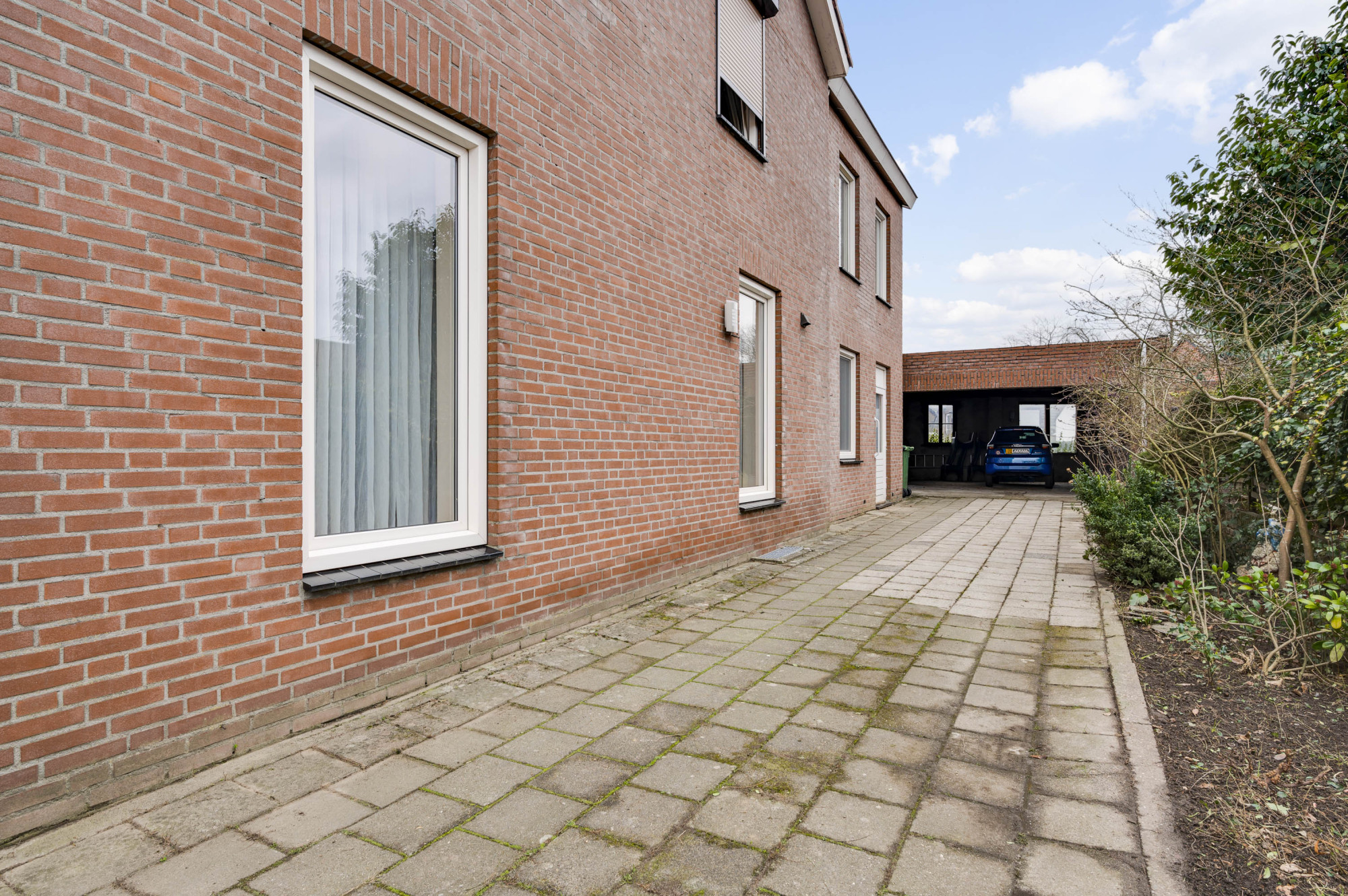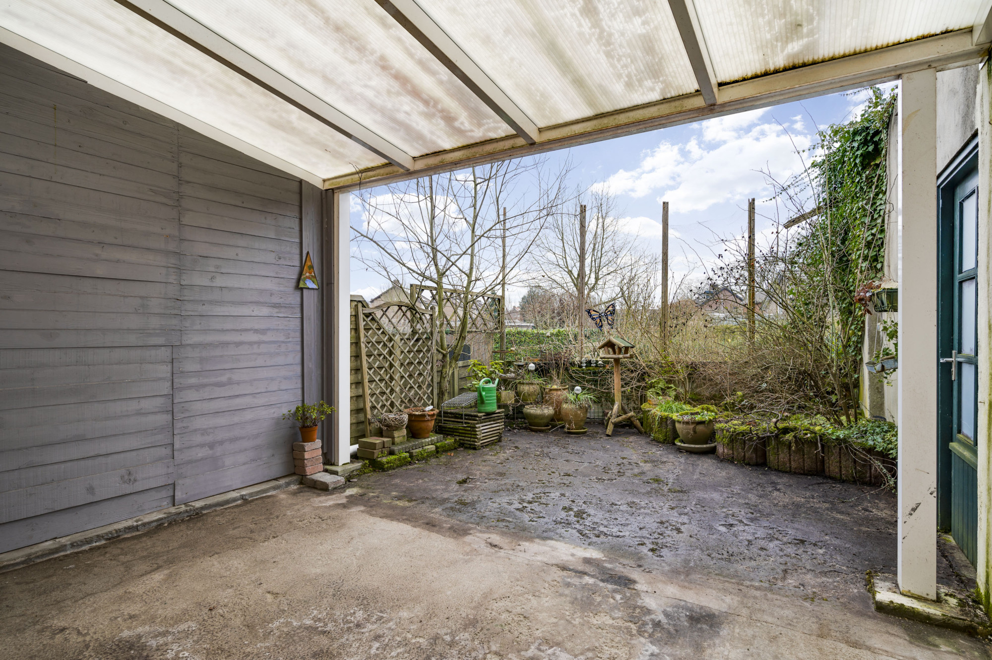 Er is een eigen privé achtertuin met veel privacy en een fijne terrasoverkapping, alsmede bestrating en borders. Vanuit de achtertuin heeft u een rechtstreekse toegang tot de (linker) garage/carport met inpandige berging. Deze leidt naar de gezamenlijke inrit met een vrije achterom.