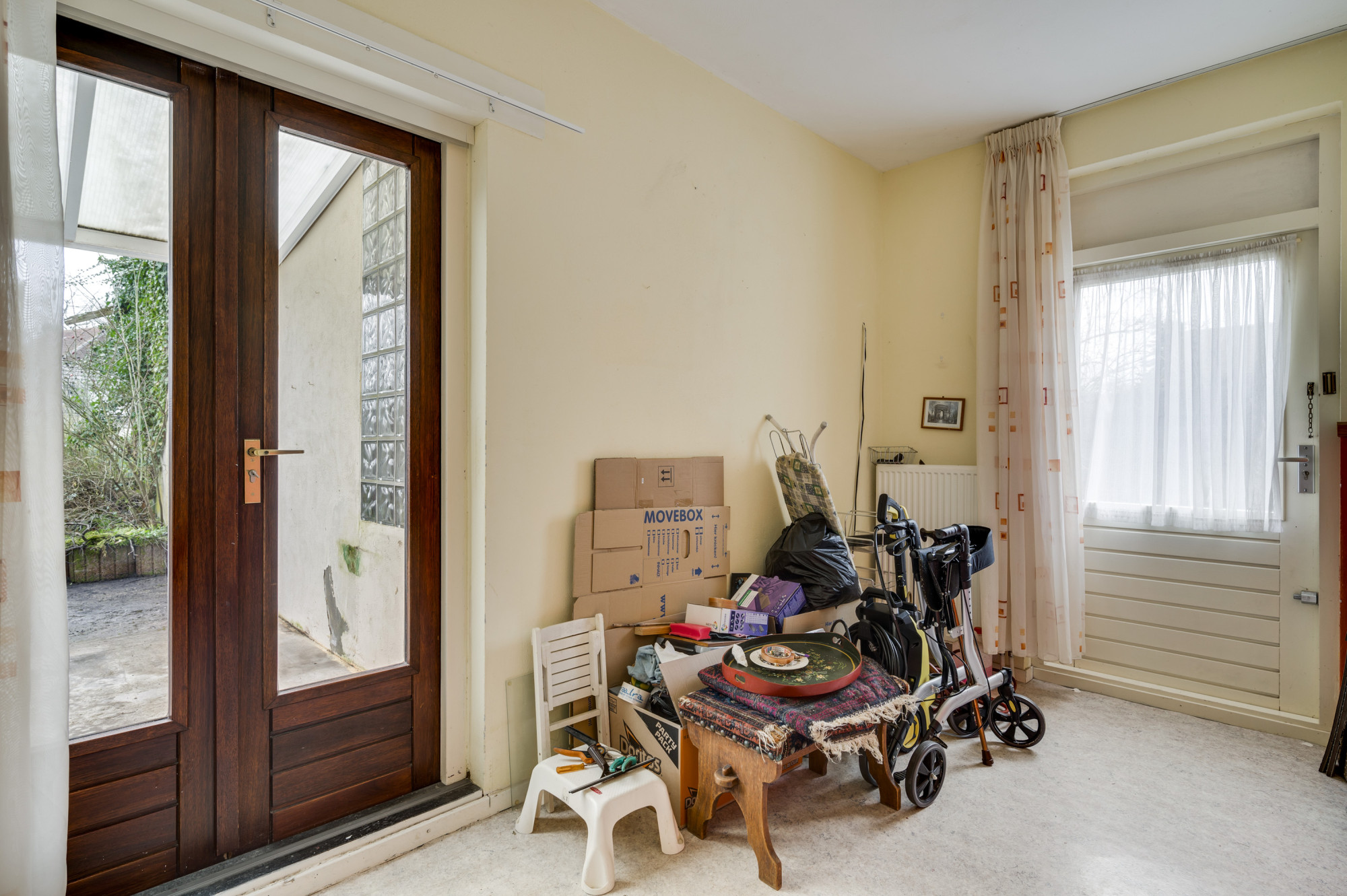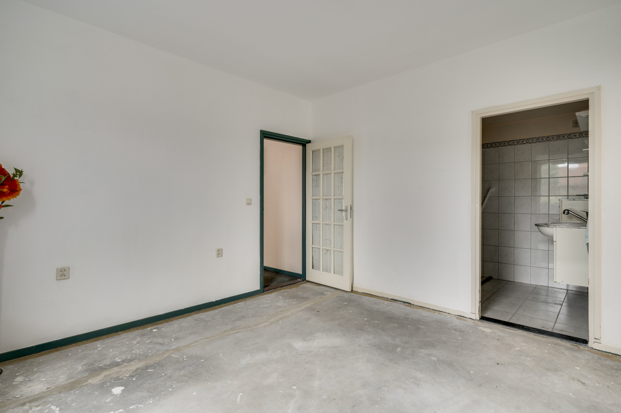 Gemeenschappelijke entree voorzien van het trappenhuis en een eigen wasruimte met de witgoedaansluitingen (mogelijkheid aansluiting 2e toilet). De sfeervolle woonkamer met een open keuken biedt een combinatie met inbouwapparatuur, waaronder een keramische kookplaat, afzuigkap, koelkast, oven, magnetron en een vaatwasser. Aangrenzend is de slaapkamer gelegen welke toegang geeft tot de badkamer en nog een 2e slaap-/hobbykamer. De badkamer is uitgerust met een inloopdouche, toilet en een wastafel met meubel. Vanuit de hobbyruimte is er een loopdeur naar de achtertuin en naar de naastgelegen oprit.