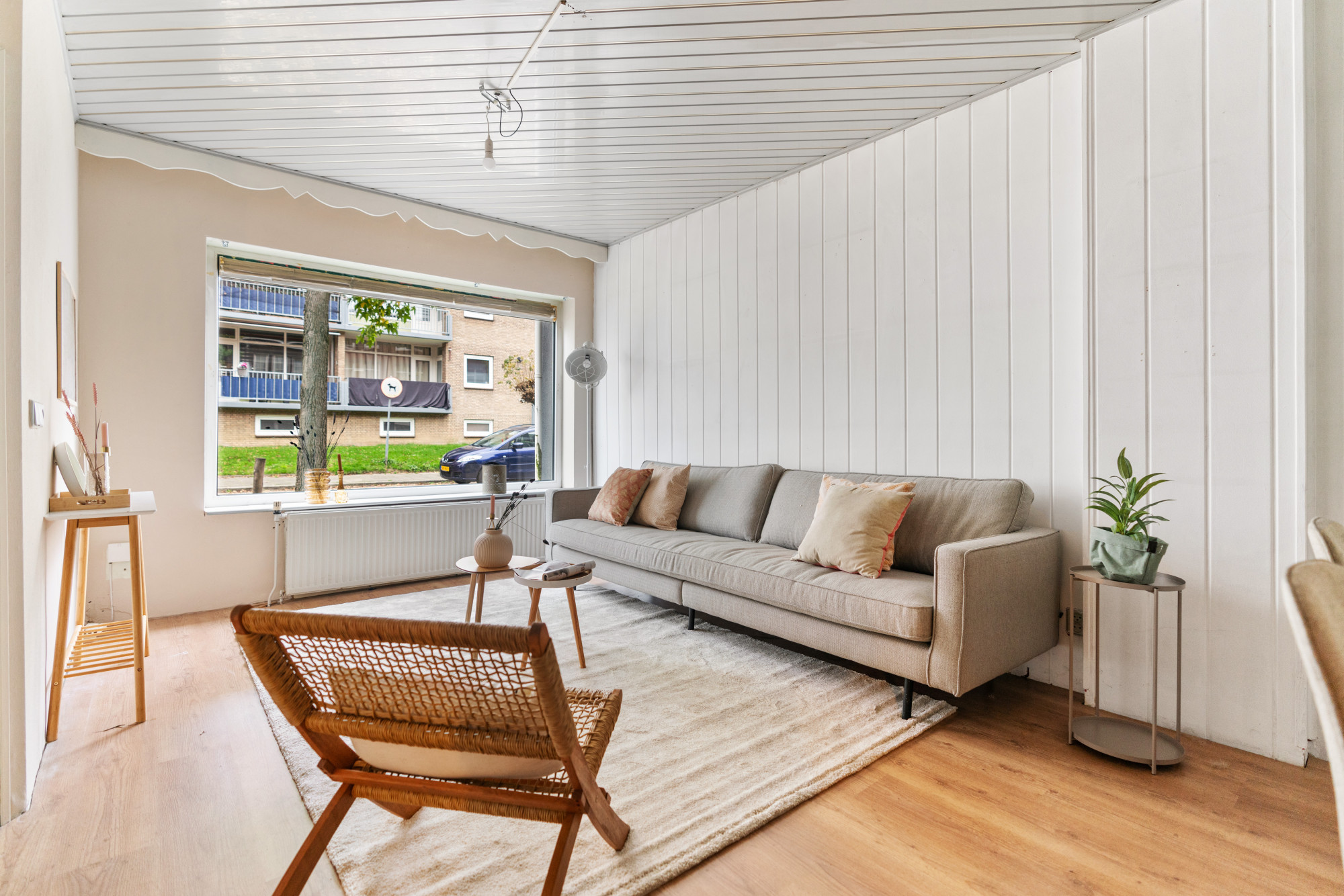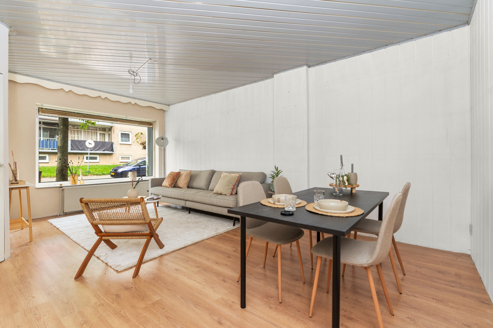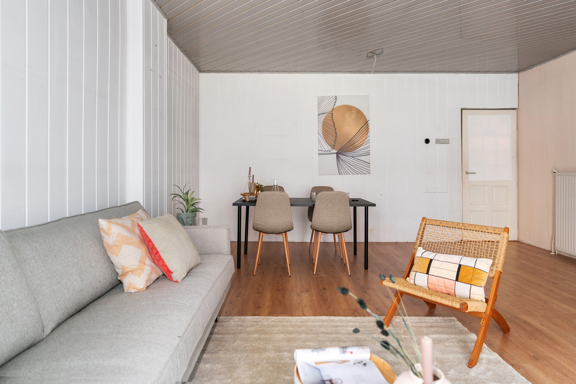 Via de entree/hal betreedt u de lichte en ruime living. Deze is voorzien van een zit- en eetgedeelte en biedt via een tussenportaal toegang tot de gesloten keuken en de trap naar de verdieping.