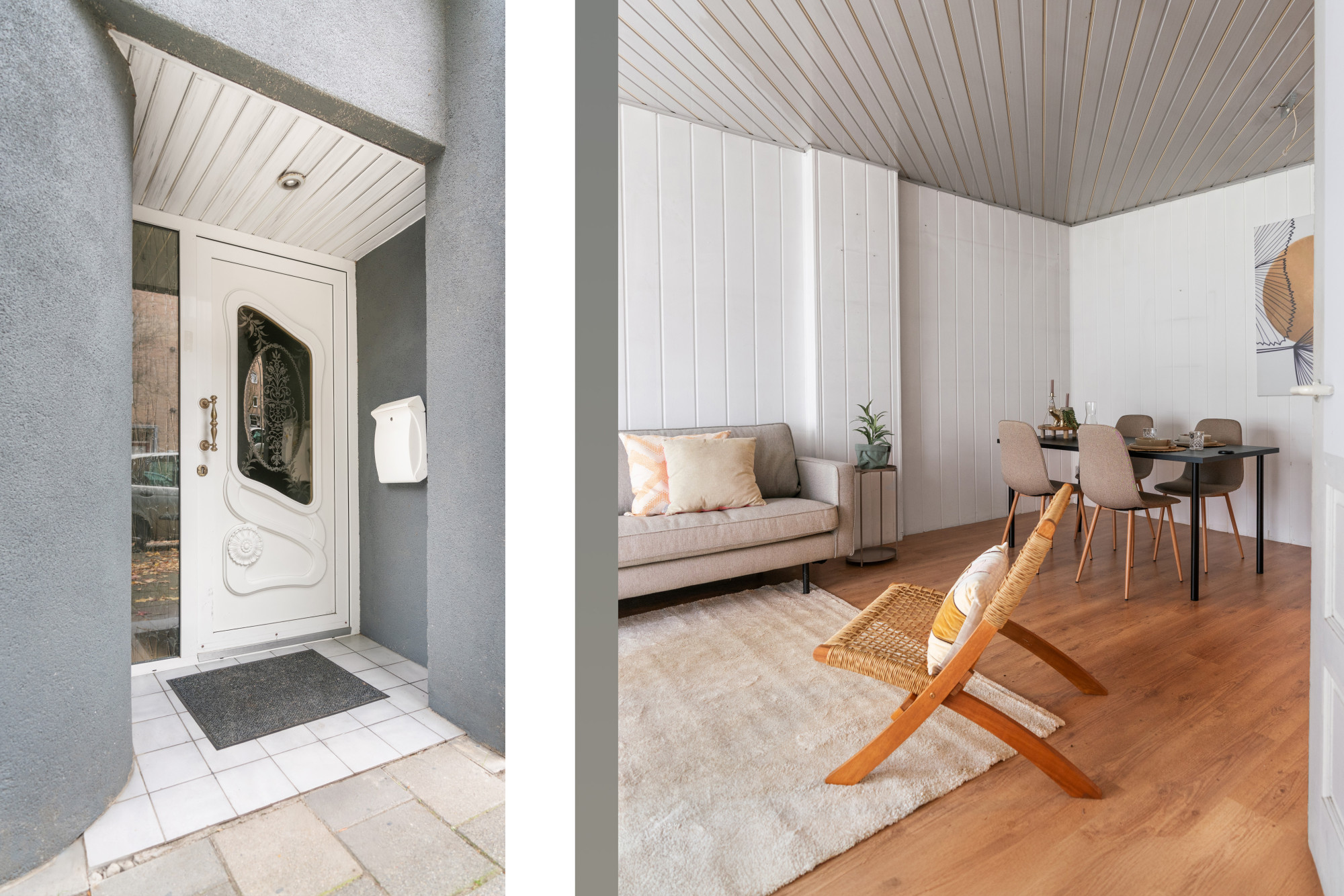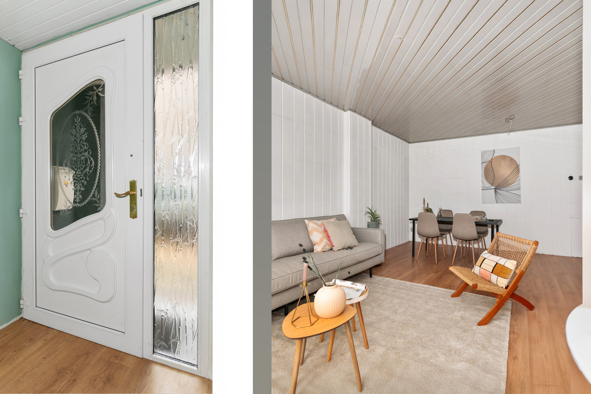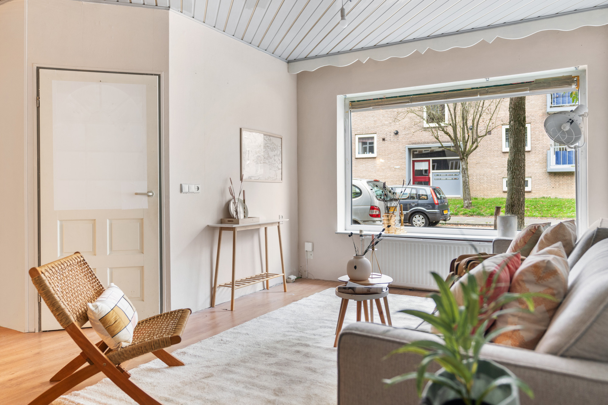 Via de entree/hal betreedt u de lichte en ruime living. Deze is voorzien van een zit- en eetgedeelte en biedt via een tussenportaal toegang tot de gesloten keuken en de trap naar de verdieping.