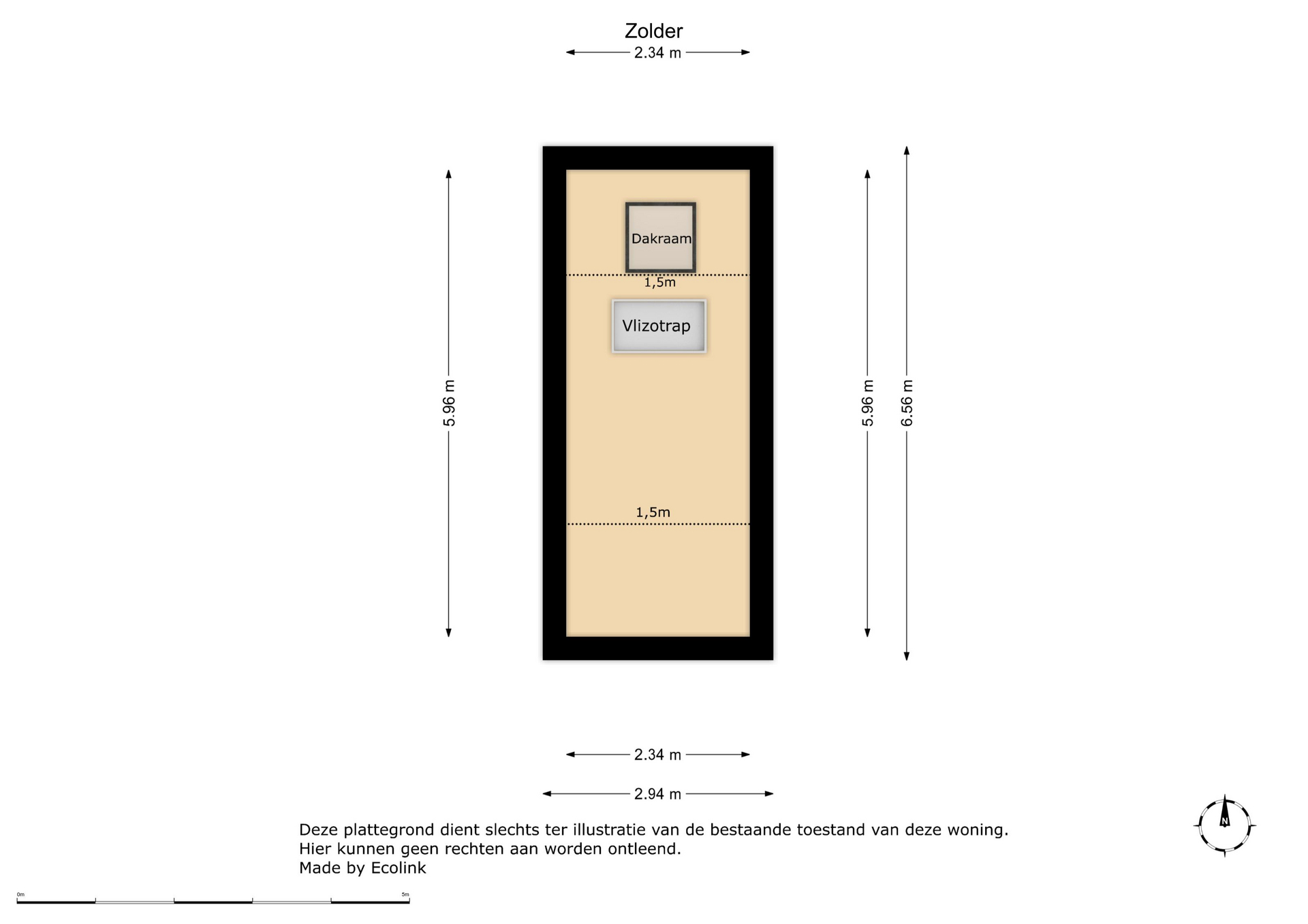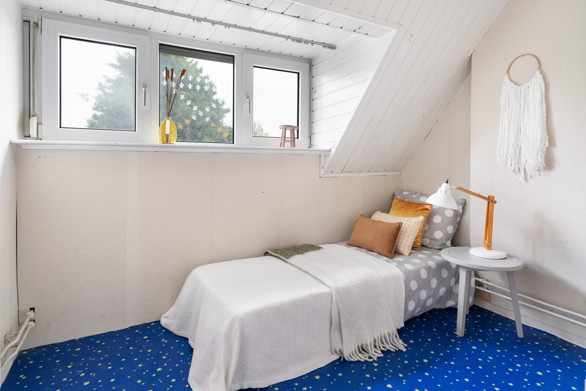 De ruime zolder, voorzien van een Velux-dakraam, biedt voldoende bergruimte.