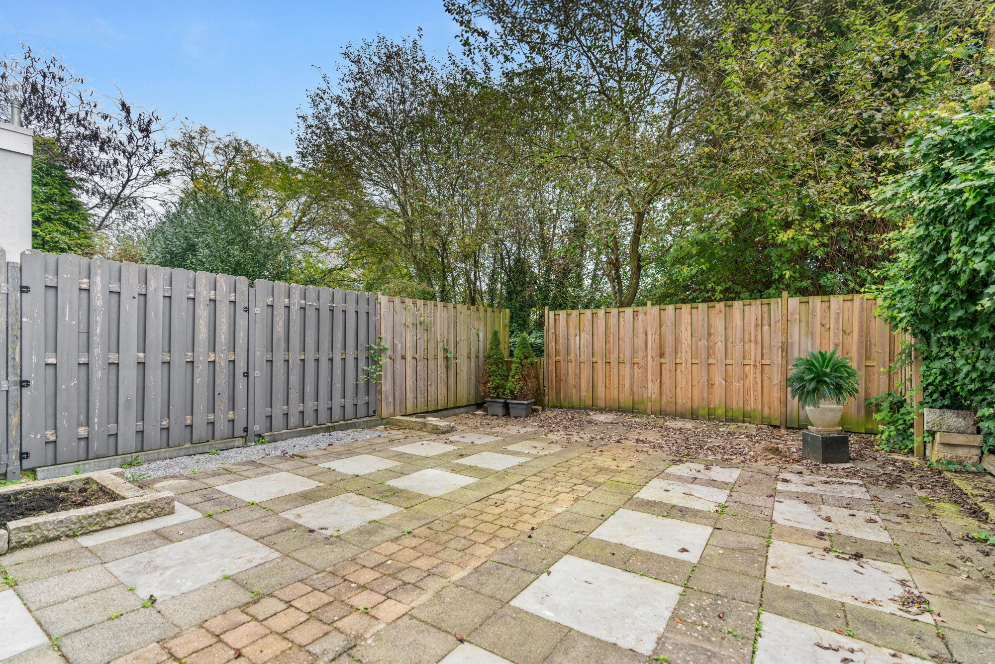 De achtertuin is volledig bestraat en voorzien van een handige achterom, waardoor u gemakkelijk toegang heeft tot de tuin zonder door het huis te hoeven.