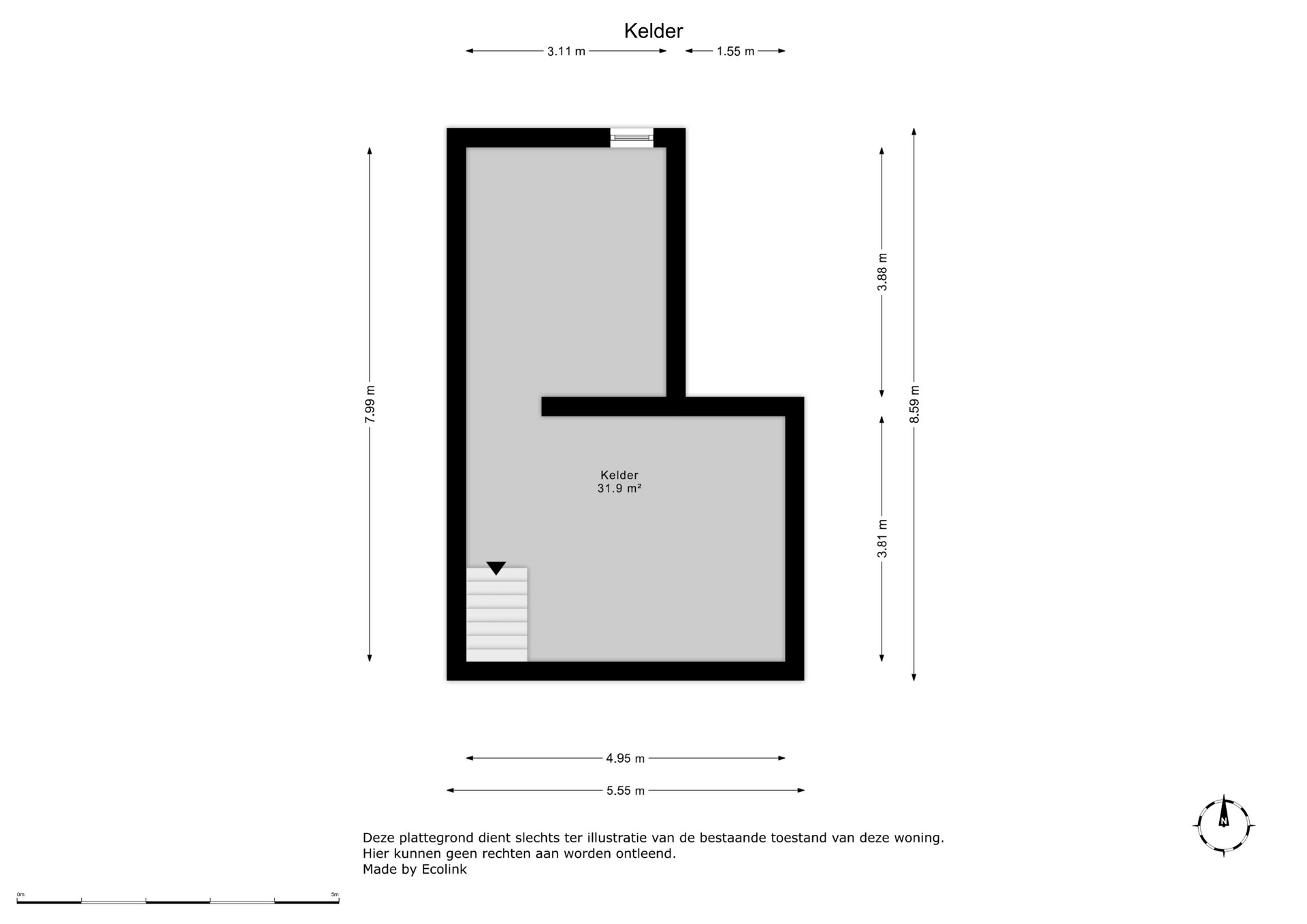 De woning beschikt over een handige kelder, bereikbaar vanuit de keuken. Ideaal voor het bewaren van voorraad of als extra opbergruimte.