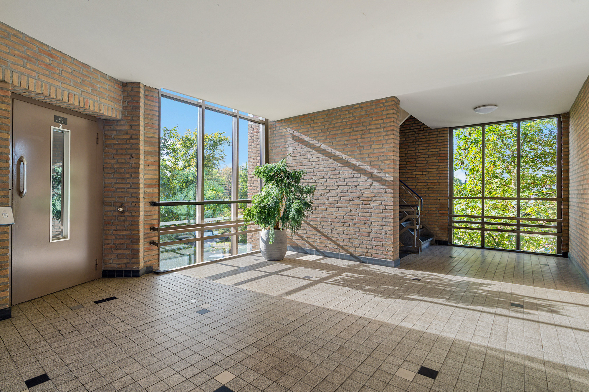 Bij binnenkomst via de gezamenlijke entree vindt u de trappenhal met brievenbussen en bellentableau. Het appartement bevindt zich op de tweede etage, bereikbaar via de galerij.