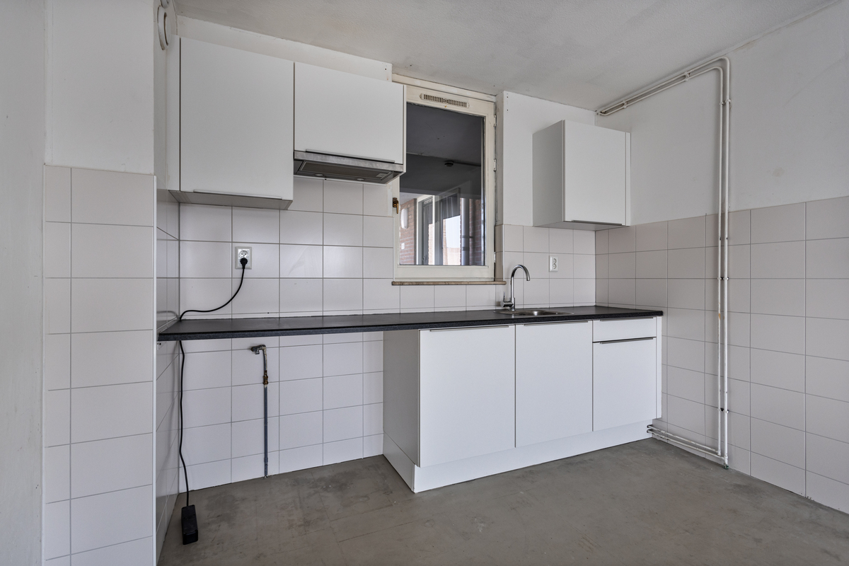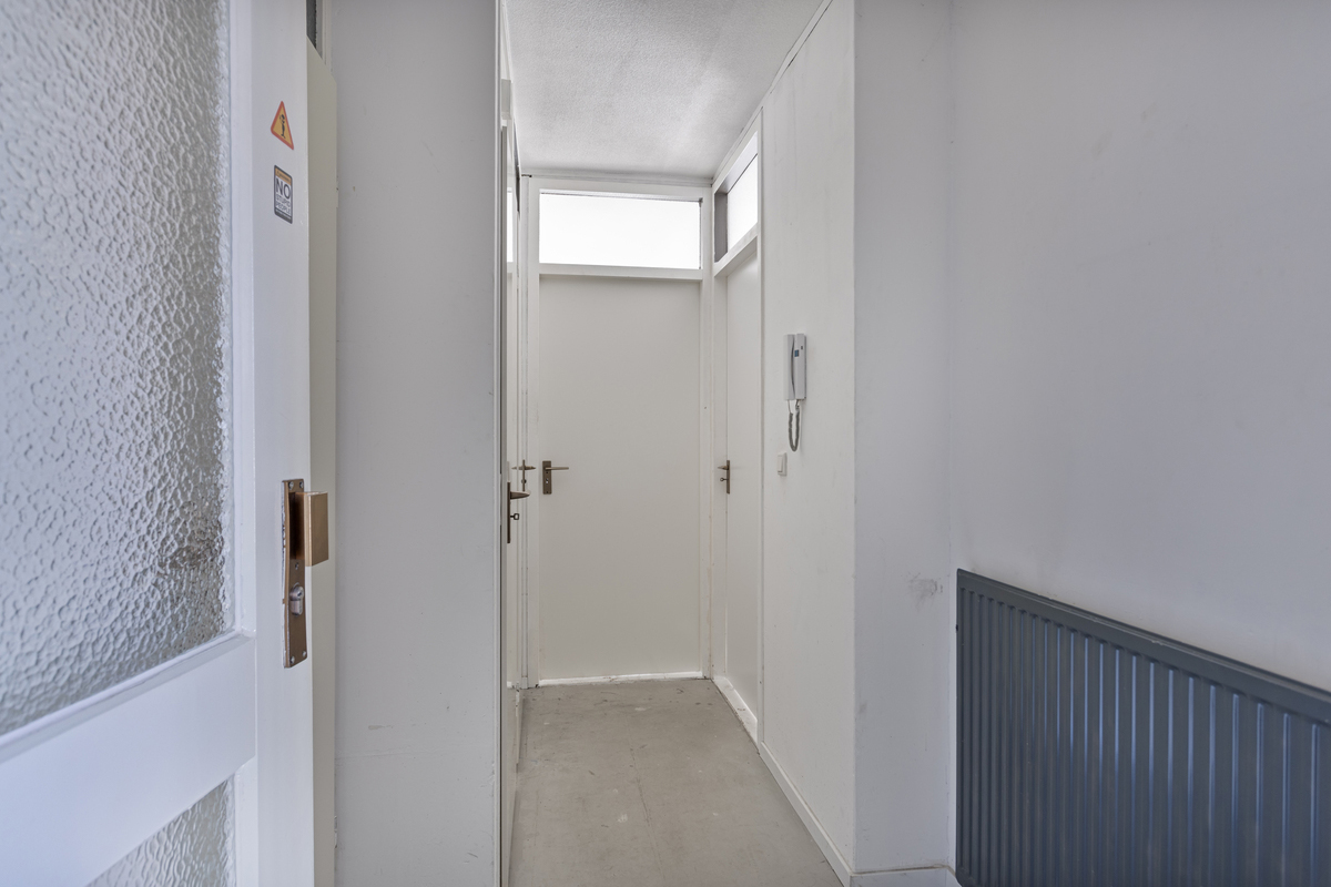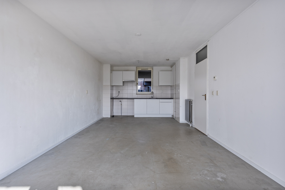 Hal met doorgang naar alle ruimten. Woonkamer met toegang balkon en doorloop naar het open keukengedeelte. In de keuken bevindt zich een functioneel keukenblok.