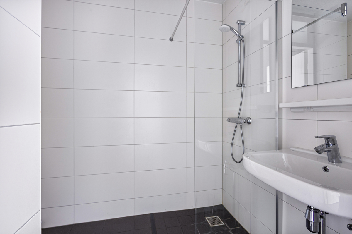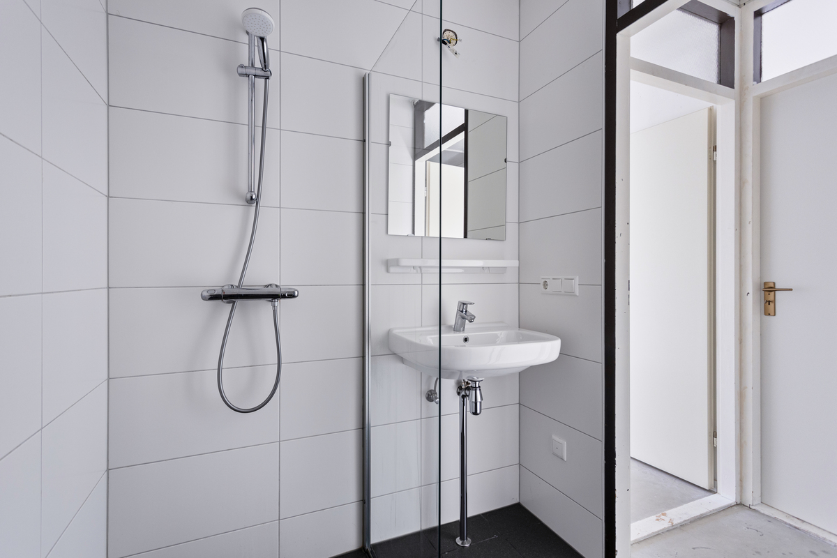 Gerenoveerde Badkamer met douche, wastafel, aansluiting wasmachine en toilet