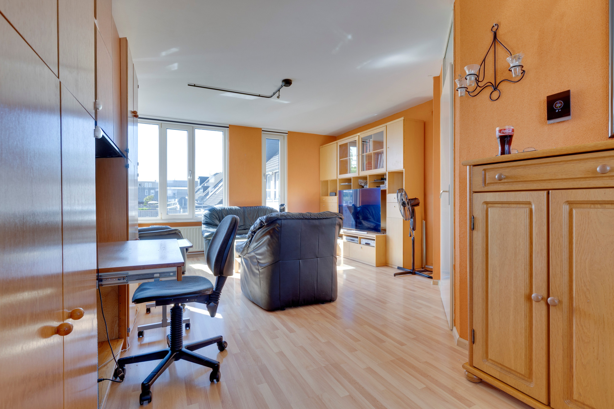 1 ruime slaapkamer (thans hobbyruimte) v.v. laminaatvloer en rolluik