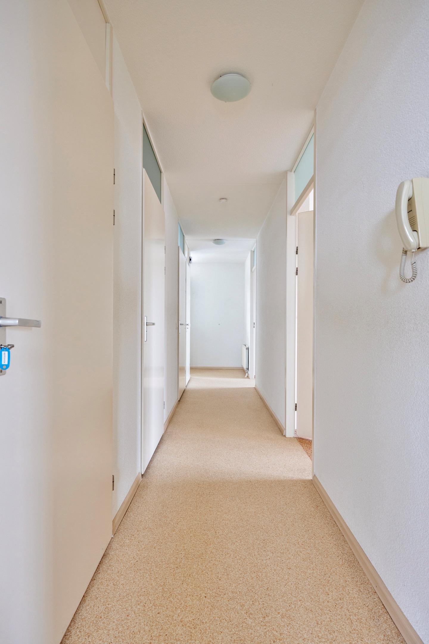 Via lift bereikbaar. Ruime hal met grindvloer. Meterkast. Moderne geheel betegelde toiletruimte met hangtoilet, fonteintje en mechanische ventilatie. Twee slaapkamers, beiden voorzien van rolluiken en afgewerkt met grindvloeren. Geheel vernieuwde badkamer met daglicht via raam, grote inloopdouche met glazen deur en regendouche, wandtoilet, designradiator, ingebouwde radio, mechanische ventilatie en badkamer-meubel met ingebouwde wastafel met spiegels en verlichting. CV/wasruimte met CV combiketel (huur), ventilatie-unit en aansluitpunten voor was-apparatuur. Royale woonkamer met mooie lichtinval en vrij uitzicht. Afgewerkt met grindvloer. Open keuken met moderne keukeninstallatie in hoekopstelling afgewerkt met een granieten werkblad en voorzien van volgende Siemens inbouwapparatuur: combimagnetron, roestvrijstalen afzuigkap, inductie kookplaat, koelkast en vrieskast. Toegang naar ruim balkon met mooi vrij uitzicht. Afgewerkt met plavuizenvloer. Voorzien van elektrisch bedienbaar zonnescherm.