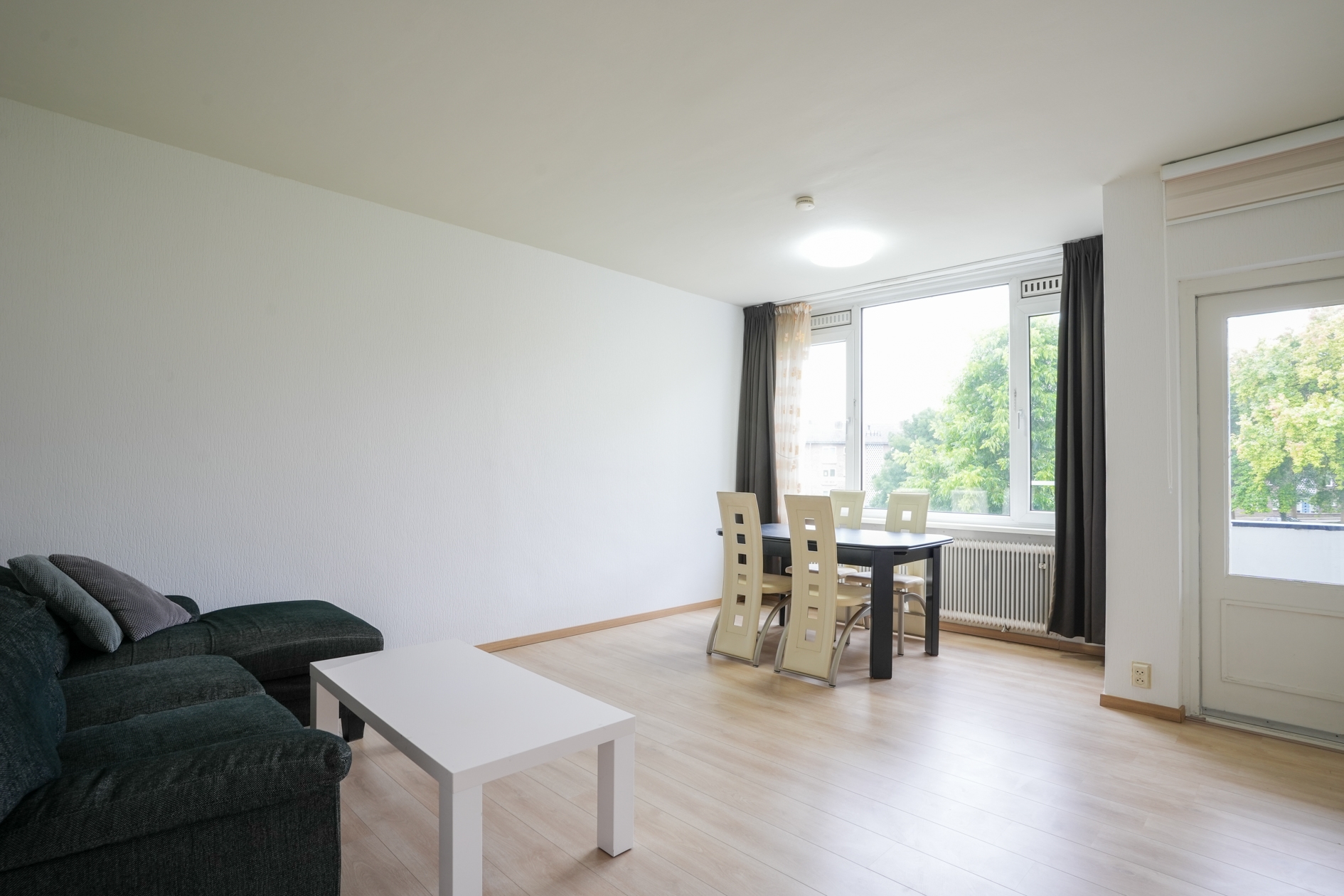 - Woonkamer van circa 20 m² met toegang tot het balkon.