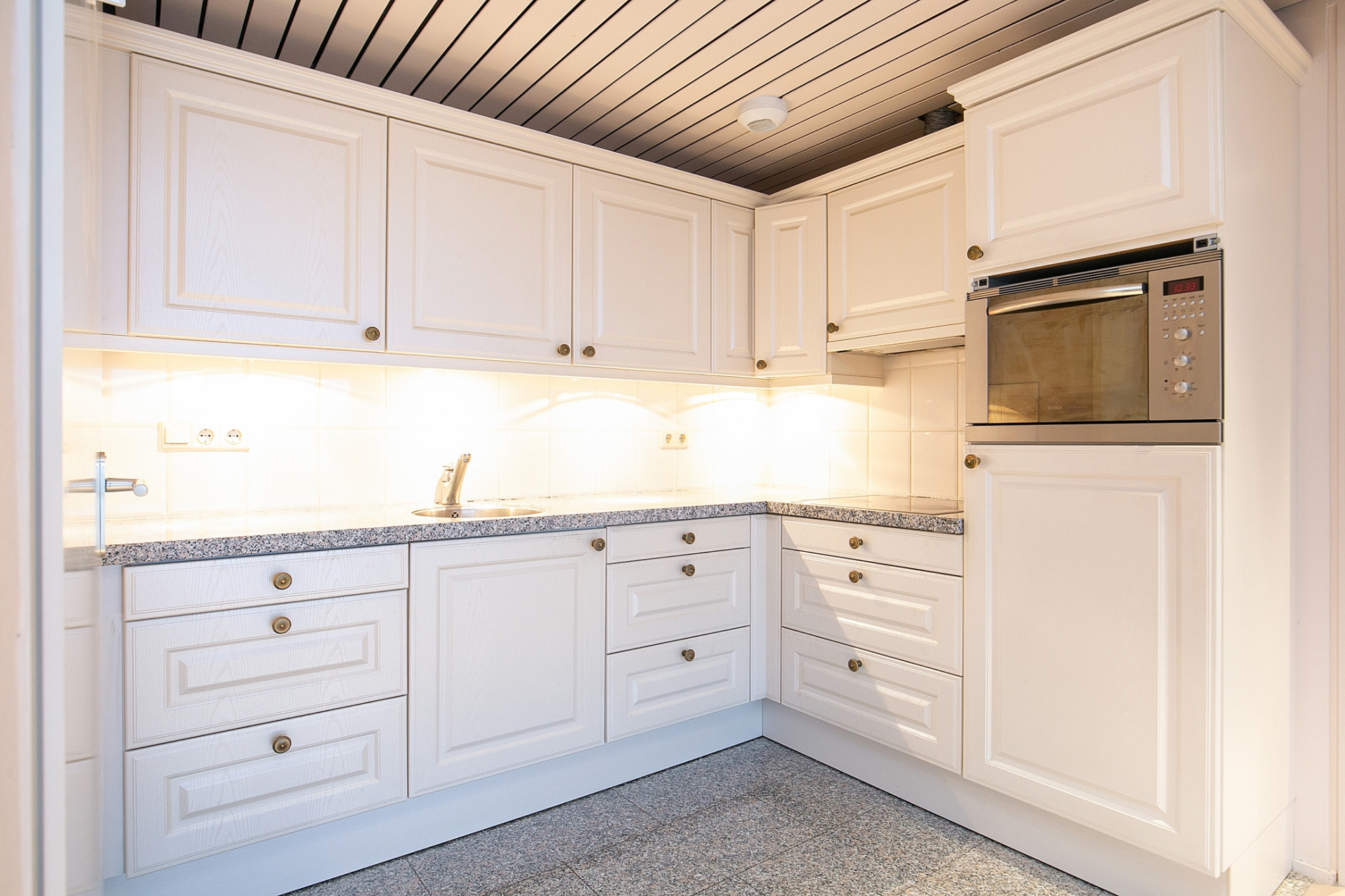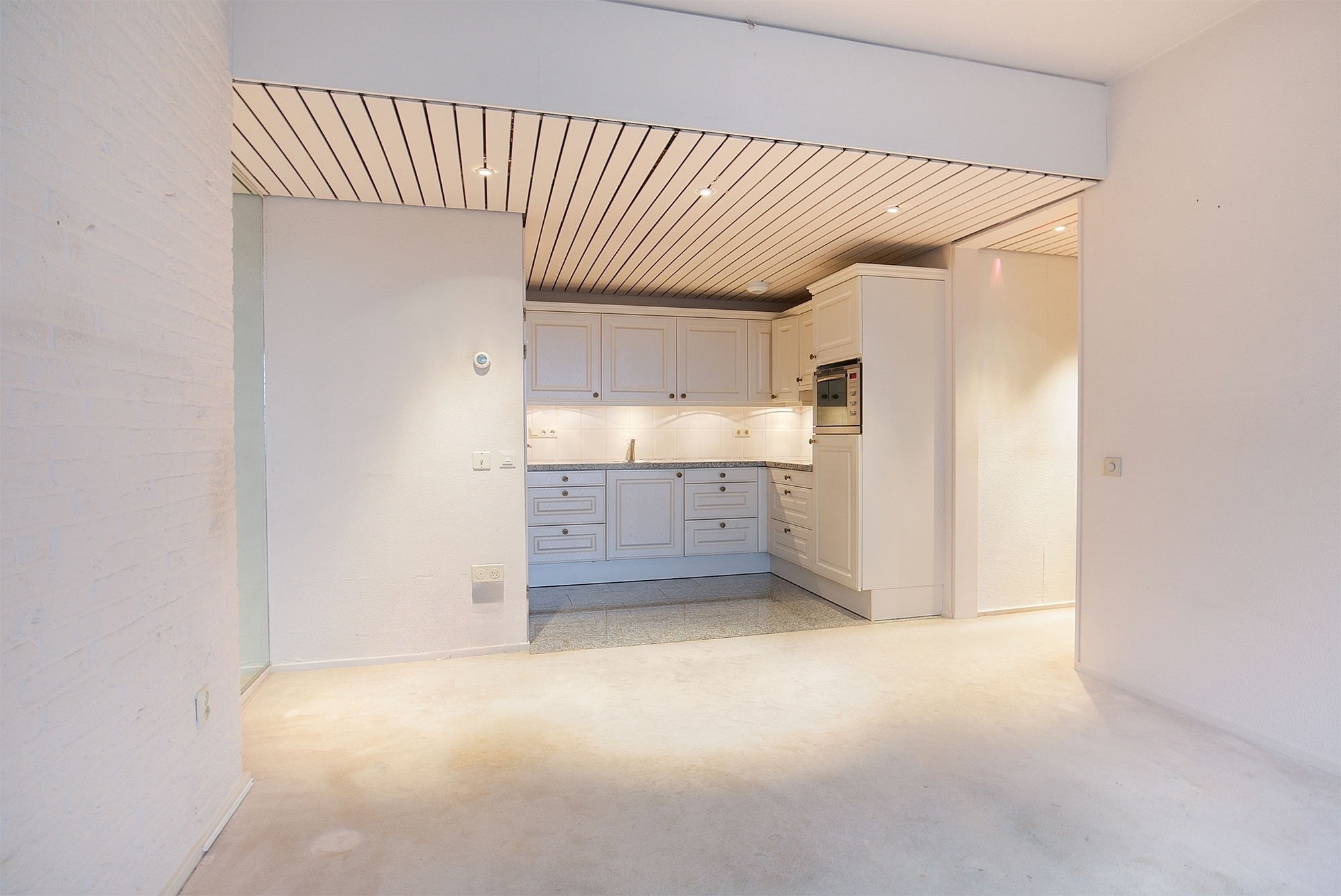 De open keuken (5m²) in hoekopstelling met granieten aanrechtblad is voorzien van de volgende (inbouw)apparatuur, te weten: spoelbak, 4-pits inductiekookplaat met afzuigkap, combi magnetron en een koelkast met vriesvak. Aansluitend bijkeuken/berging (2m²) met de aansluiting voor de wasmachine. Eveneens is hier de c.v. ketel geplaatst. Vanaf het royale dakterras (21m²) kan u genieten van het 's avonds verlichte Gouvernement en het prachtige uitzicht richting België.