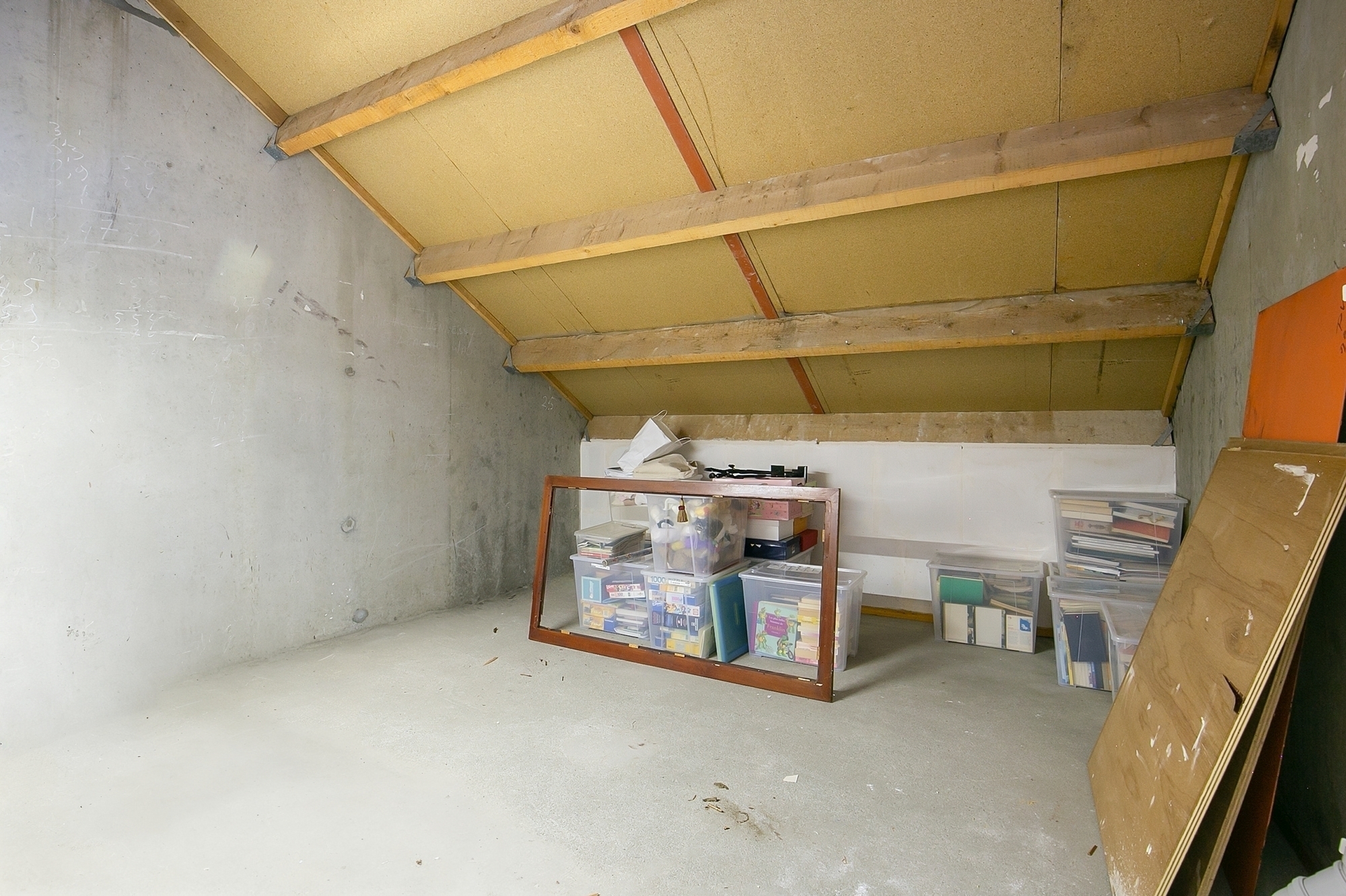 De zolder (12m²) van dit appartement is bereikbaar via een vaste trap vanuit de gezamenlijke hal en is te gebruiken als berging.