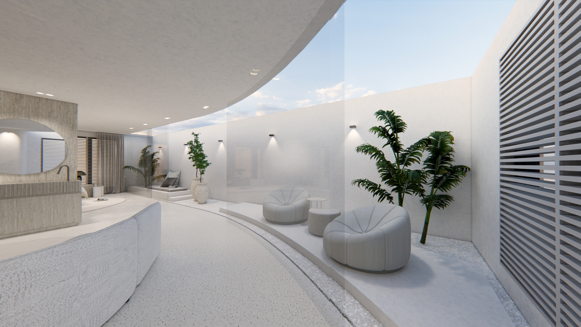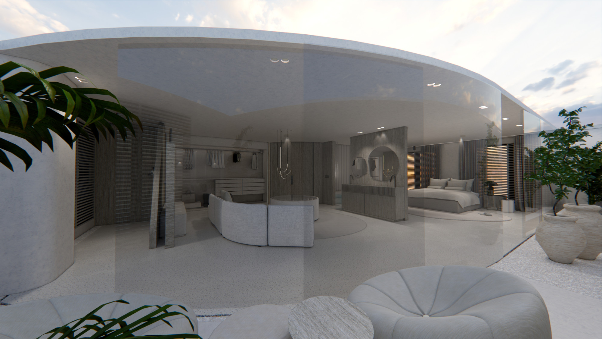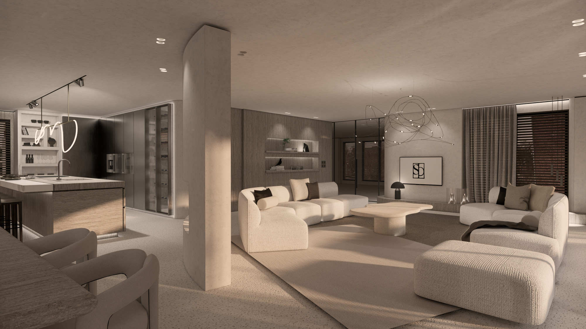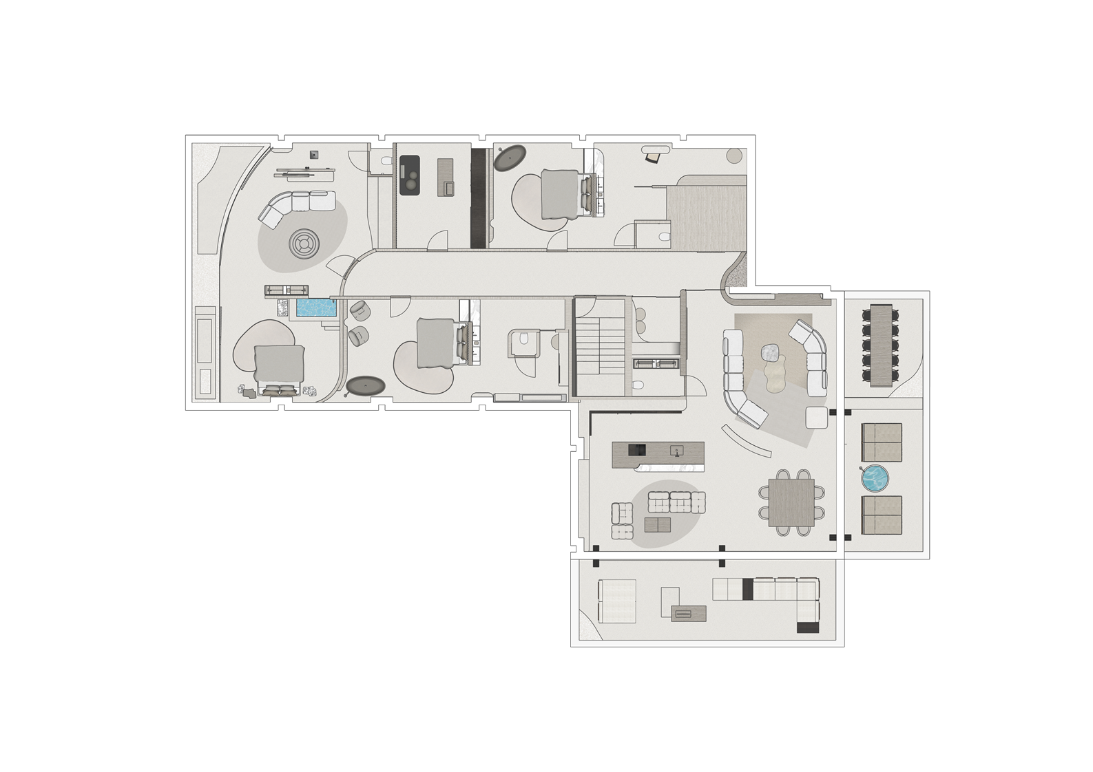 Dit penthouse wordt gerealiseerd op de 5e verdieping en wordt ruim 440 m² met een terras van ca. 75 m² op het westen en een terras van ca. 75 m² op het zuiden. Beide terrassen bieden zicht op de Maas richting Wyck.