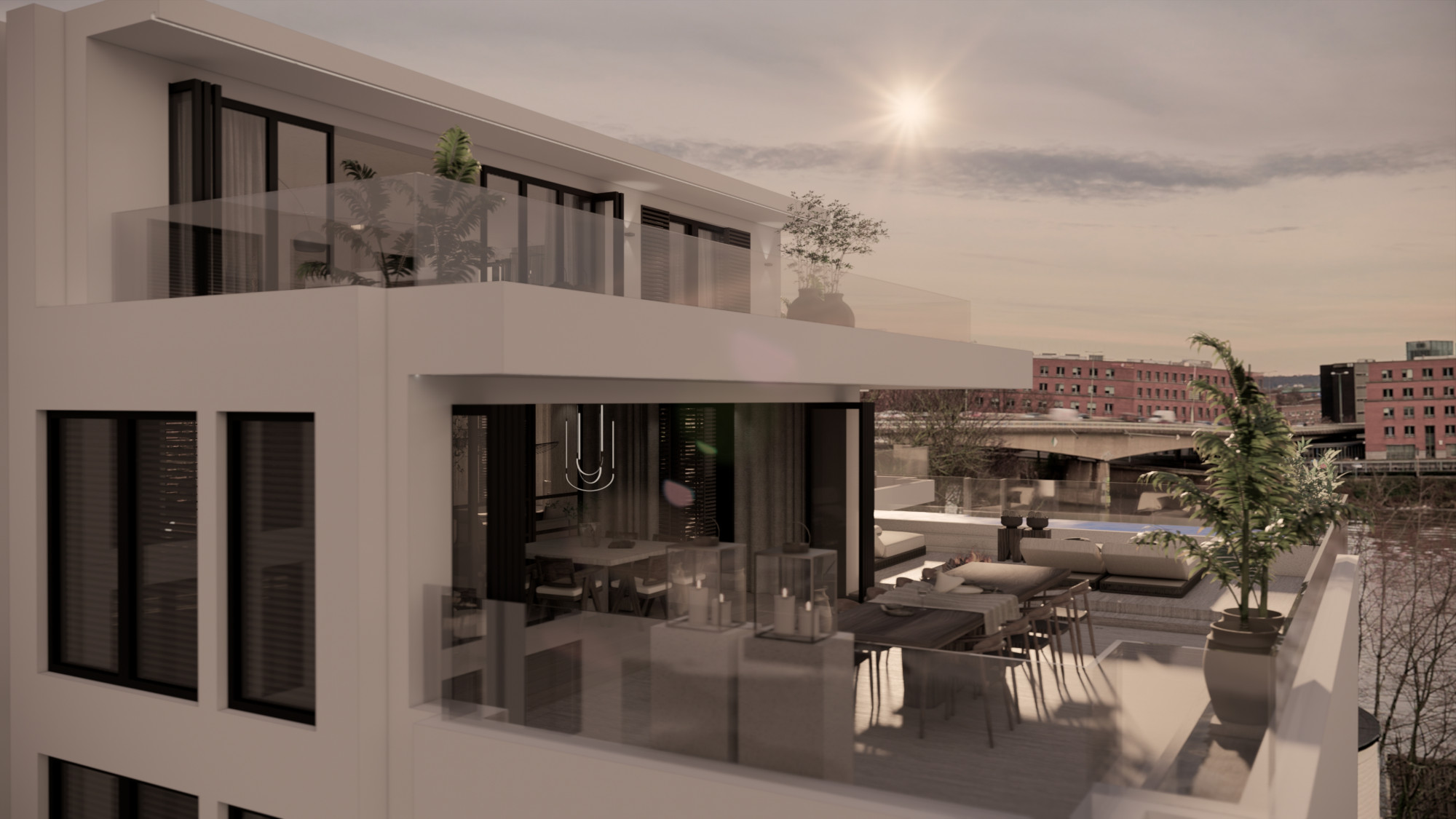 Aan de geliefde Parkweg, langs de Maas worden twee meer dan riante penthouses met royale terrassen gerealiseerd.