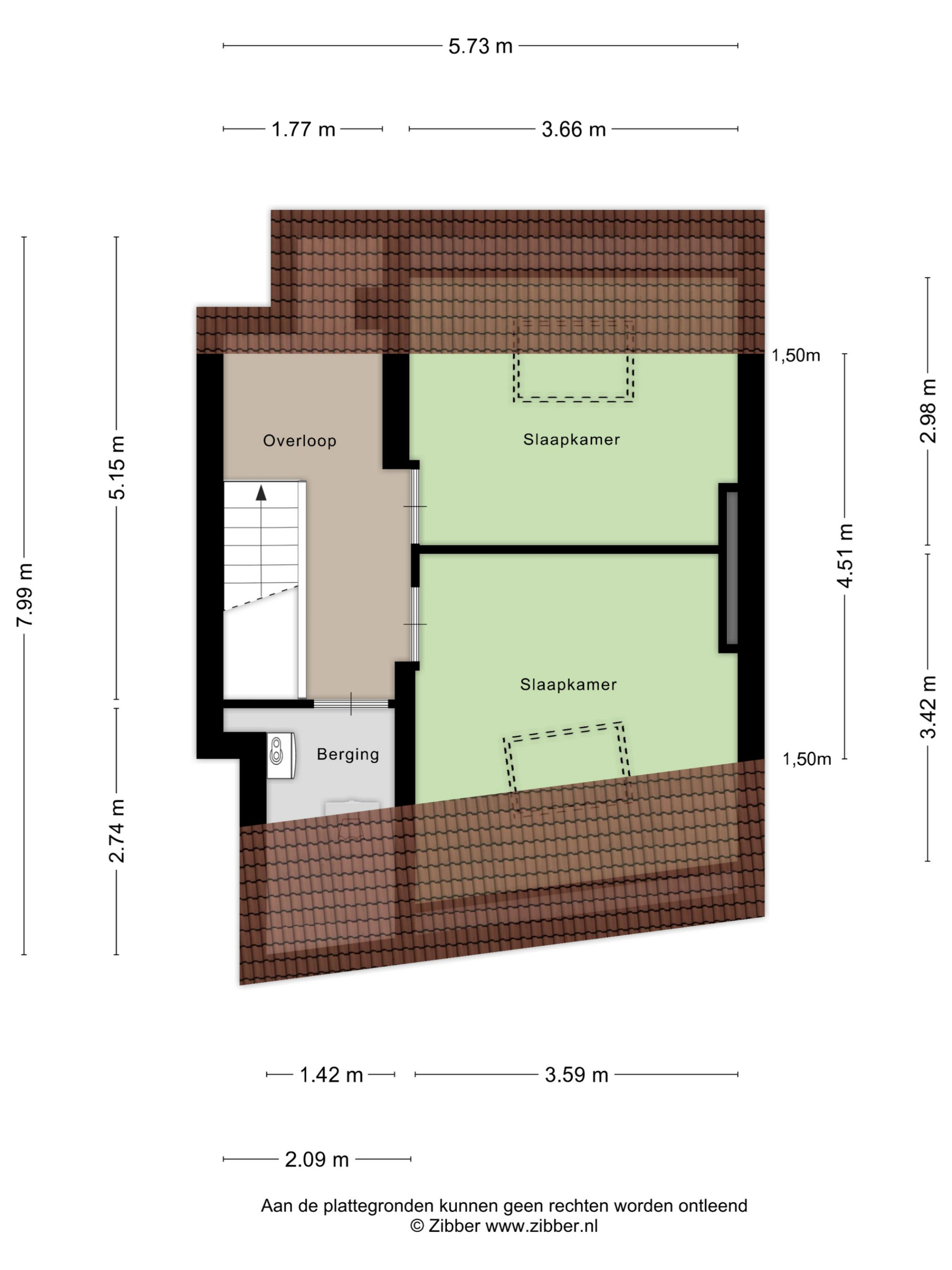 - Twee slaapkamers van respectievelijk en ca. 10 m² en ca. 13 m², beiden met grote ramen.