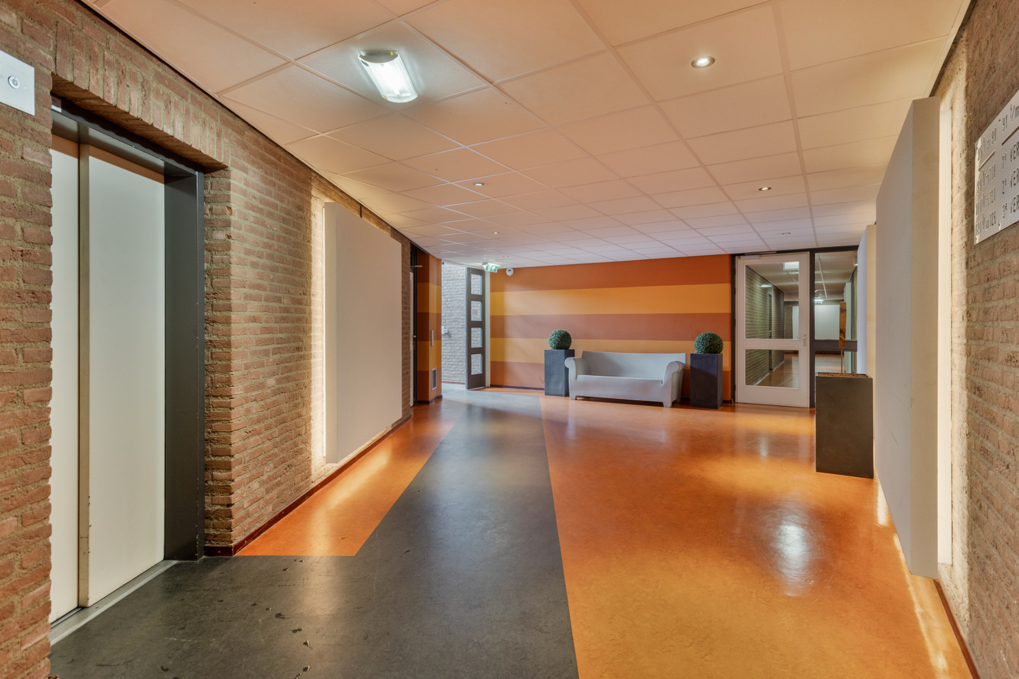 De entree van het gebouw bevindt zich aan de parkeerzijde. Centrale hal voorzien van trappenhuis en lift naar de in totaal 4 verdiepingen en 36 appartementen. De hal is voorzien van een bellentableau, brievenbussen en trappenhuis.