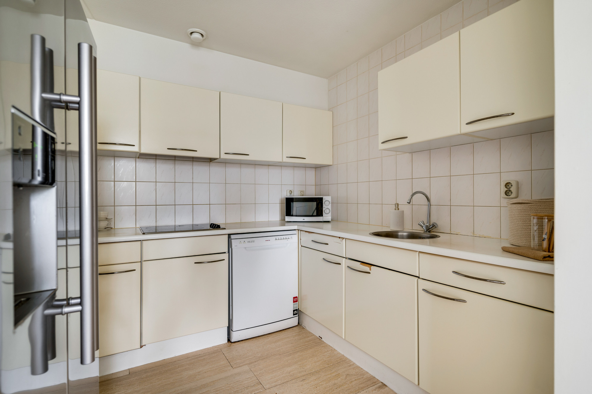 De royale woonkamer, gevuld met natuurlijk licht, nodigt uit om te ontspannen of gasten te ontvangen. Hier heeft u toegang tot het zonnige balkon, perfect voor uw kopje koffie in de ochtendzon. Tevens is er een comfortabele airconditioning aanwezig. De woonkamer staat in open verbinding met de keuken, die praktisch is ingericht en van benodigde apparatuur is voorzien van een gaskookplaat, afzuigkap, koel-vriescombinatie en vaatwasser. De tweede slaapkamer grenst direct aan de keuken en biedt de mogelijkheid voor een flexibele indeling, afhankelijk van uw wensen.