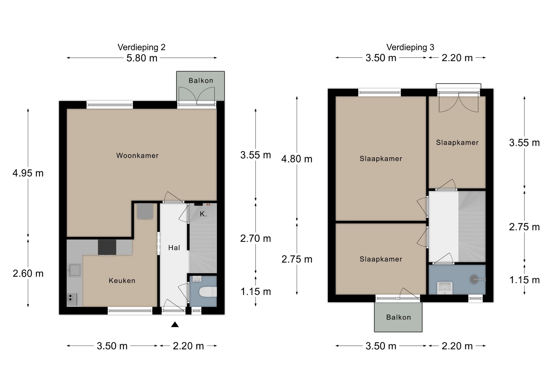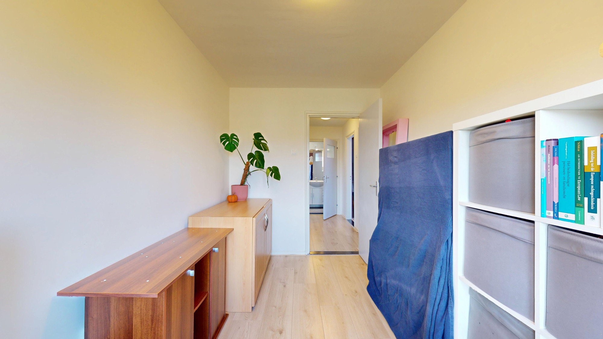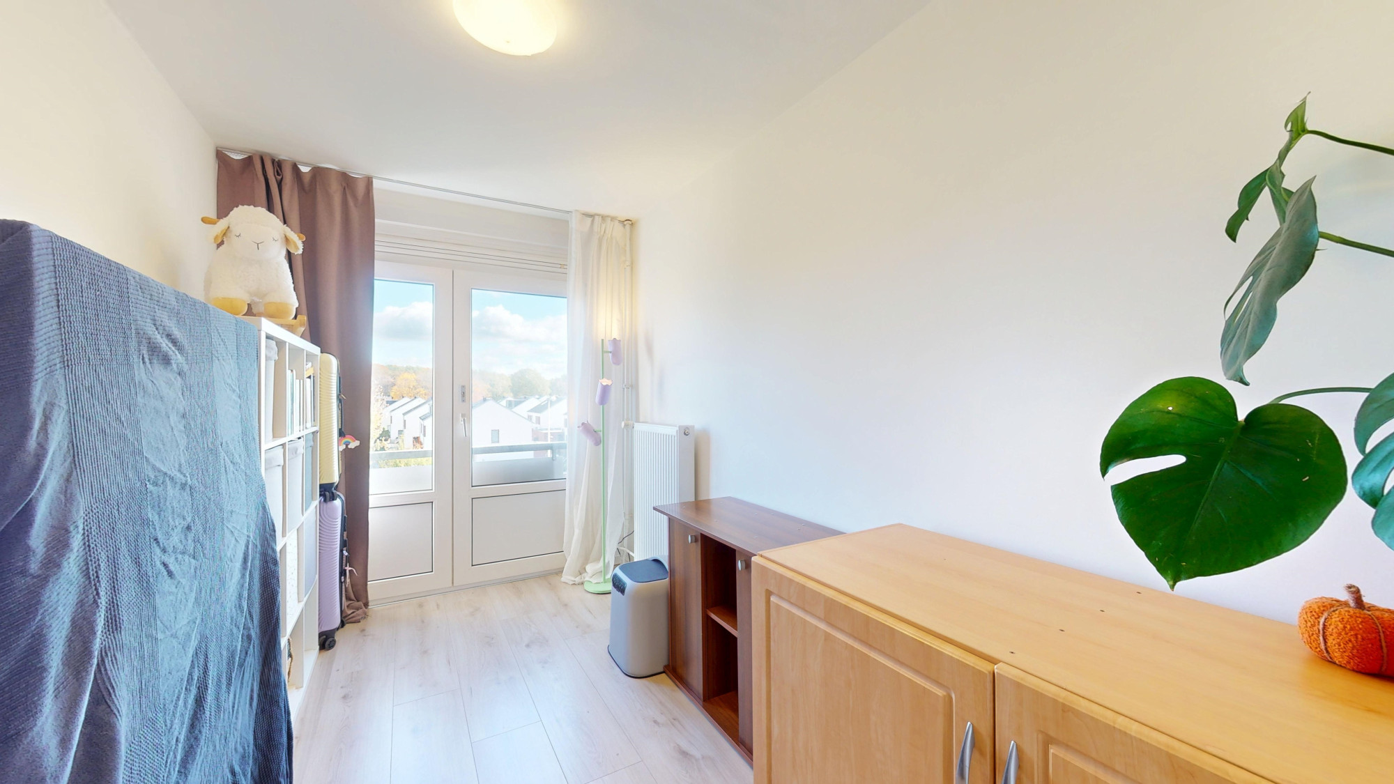 Slaapkamer 2 (3,5 x 2,75 m) v.v. laminaat, alwaar toegang tot balkon voorzijde gebouw (1,95 x 1,3 m).